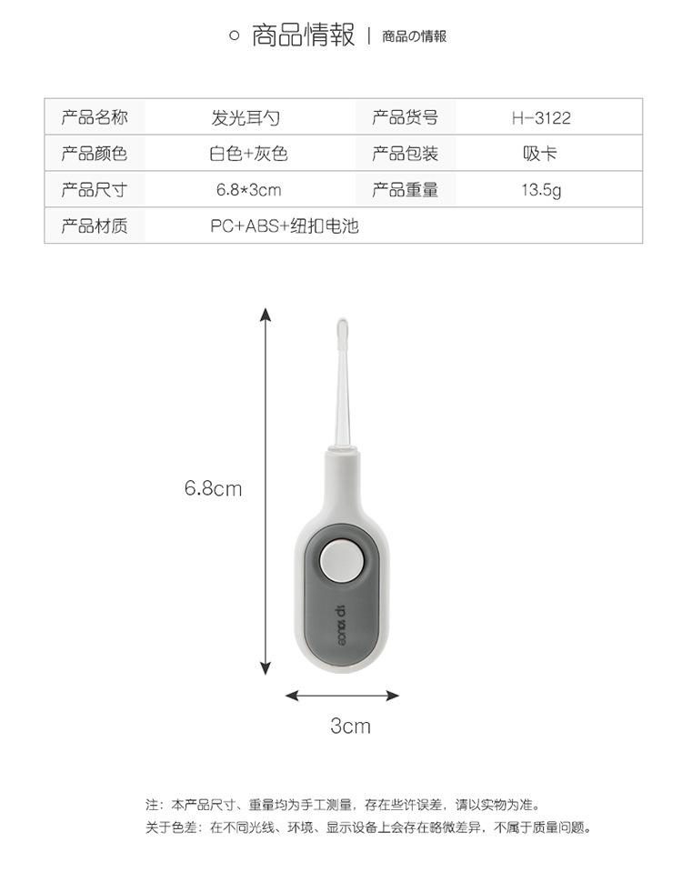Cucharilla para Oídos Luminosa Herramienta de Limpieza de Oídos para Adultos, Cucharilla para Oídos Visual con Luz, Herramienta Segura para la Extracción de Cerumen para Niños