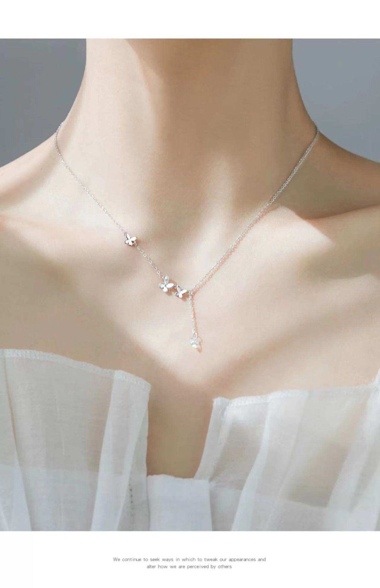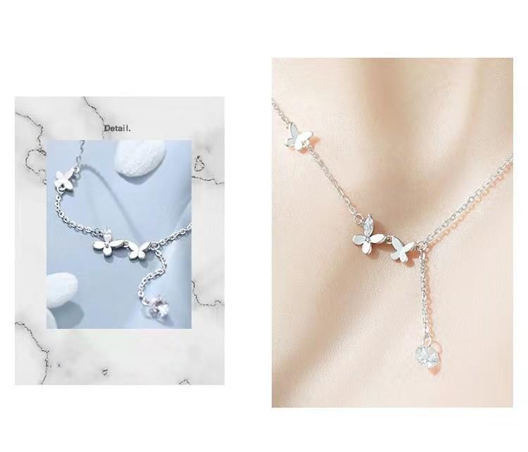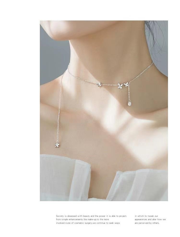Collar de mariposa bañado en plata 925, nuevo diseño de cadena de clavícula de lujo para mujer, ligero y explosivo, con un toque de verano.