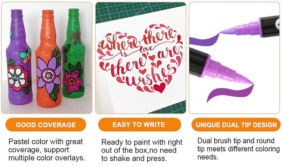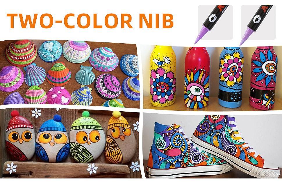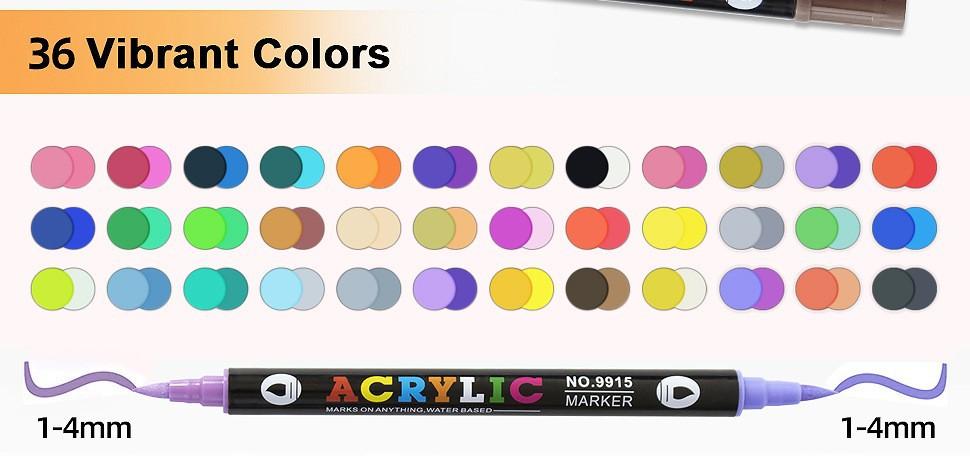 Set de rotuladores acrílicos de dos puntas y dos colores, 36 colores, rotulador para grafiti y pintura a color, punta suave, resistente al agua, no se decolora, de secado rápido, pincel