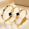 Pulsera de Trébol de Cuatro Hojas Electrochapada que no se decolora, Pulsera Ecológica, Pulsera de Estilo Europeo y Americano, Pulsera Dorada, Pulsera Espejo, Pulsera de Acero de Titanio