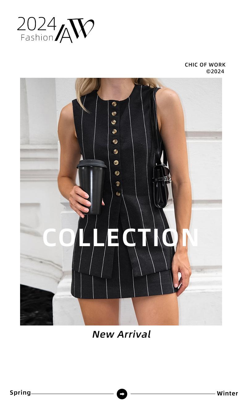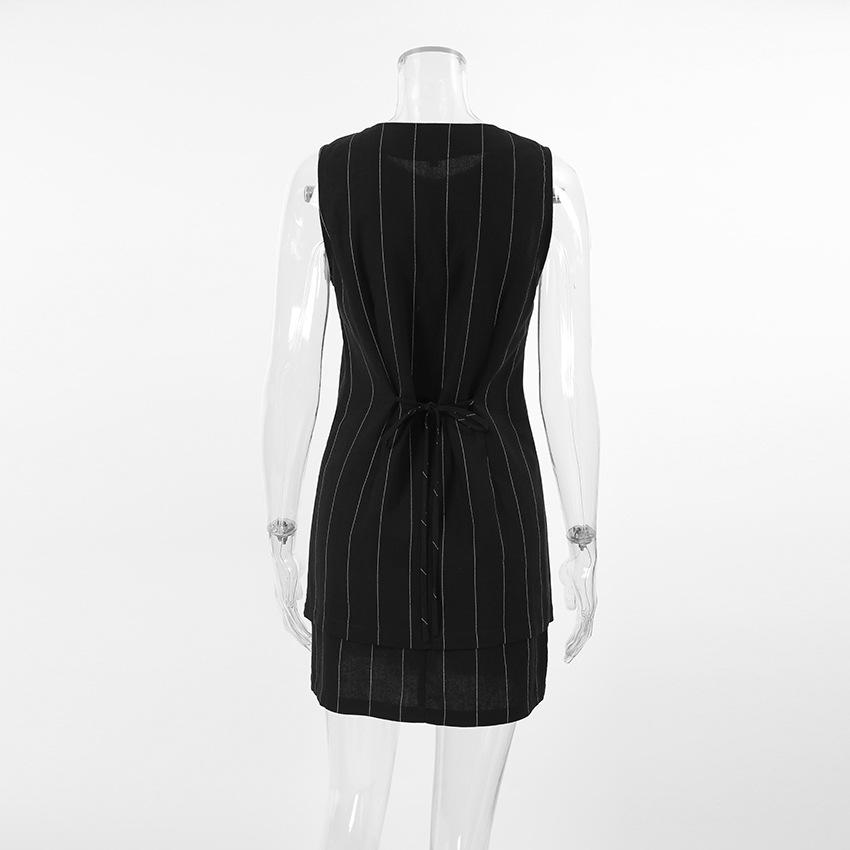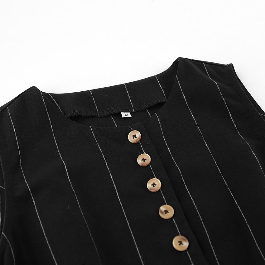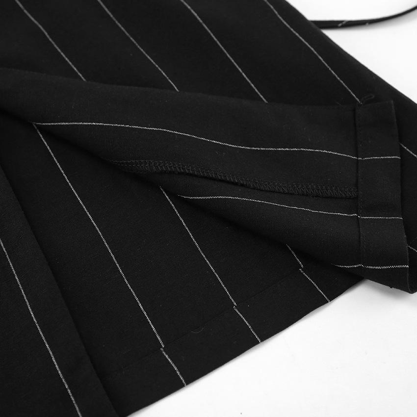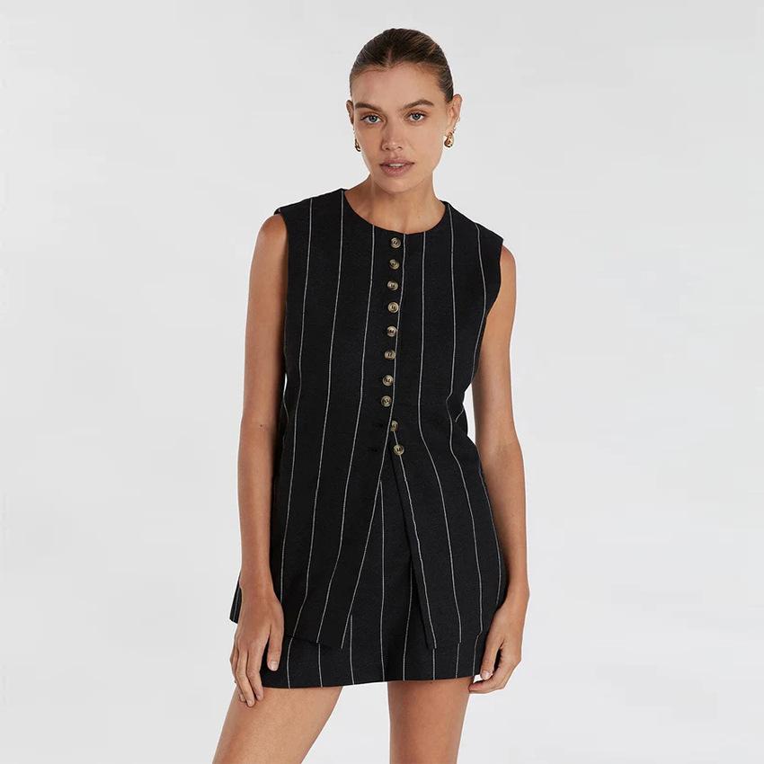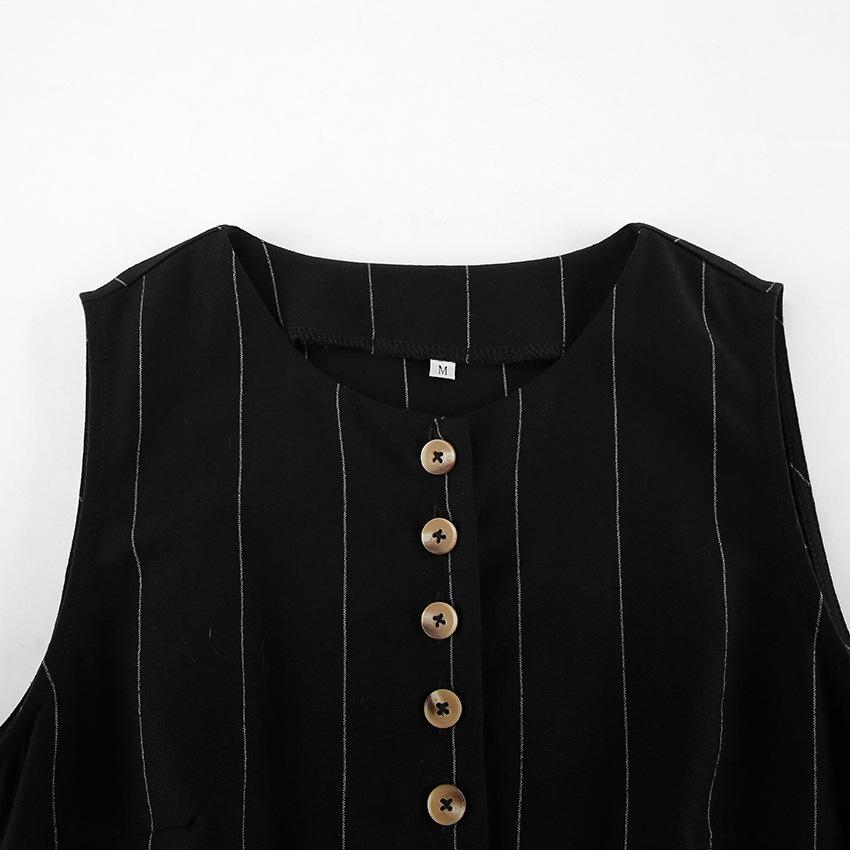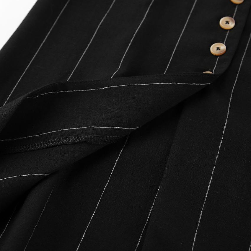Traje de trabajo versátil ruso de dos piezas con chaleco y falda a rayas, clásico de verano de algodón y lino con cordones.