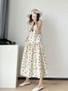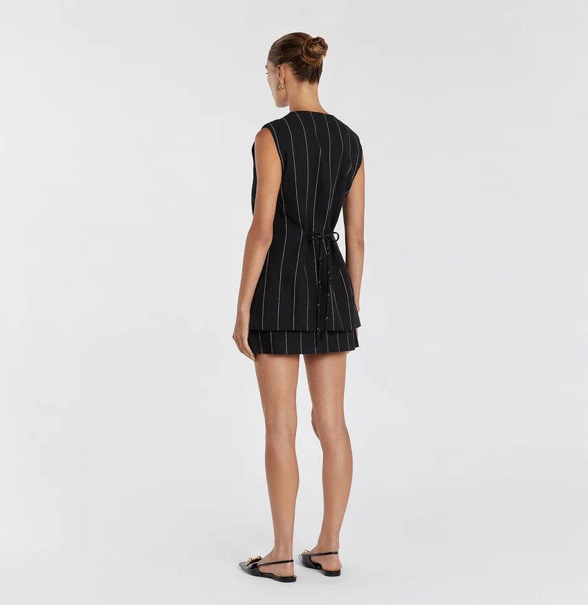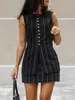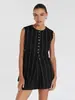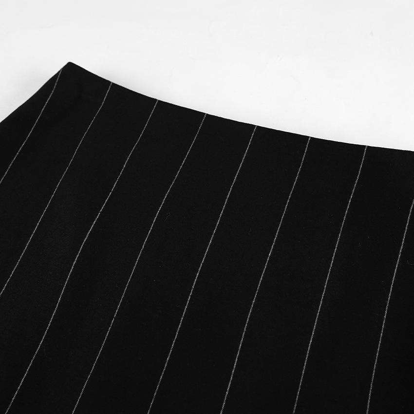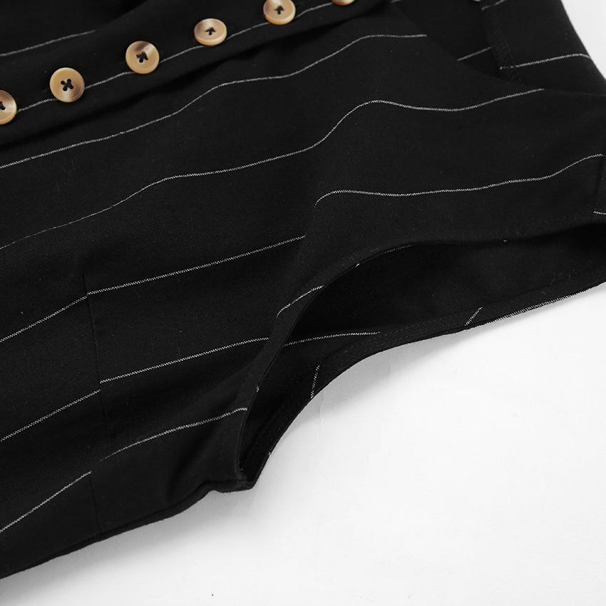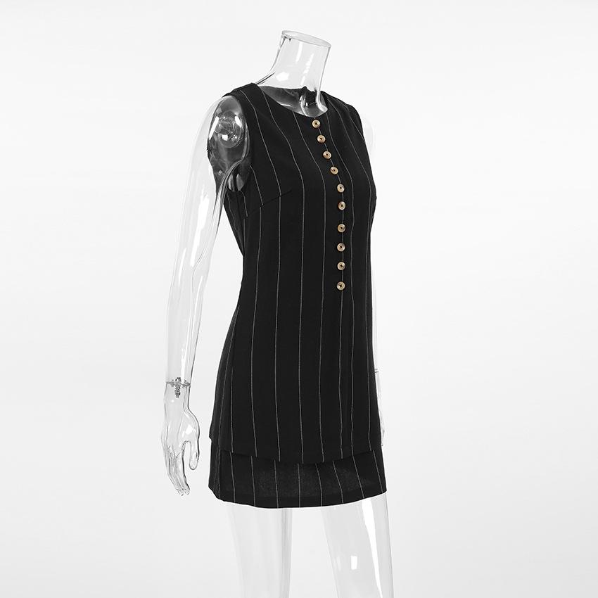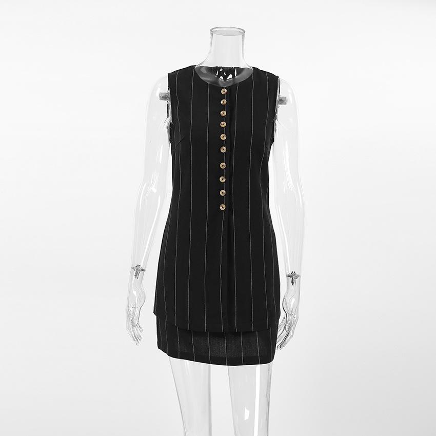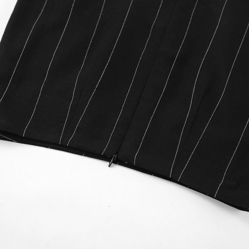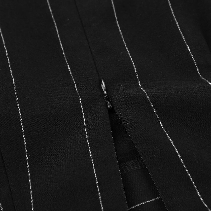 Traje de trabajo versátil ruso de dos piezas con chaleco y falda a rayas, clásico de verano de algodón y lino con cordones.