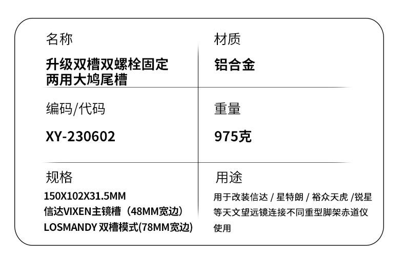 Ranura de cola de milano grande de doble propósito fija con doble perno de doble ranura mejorada XY-230602