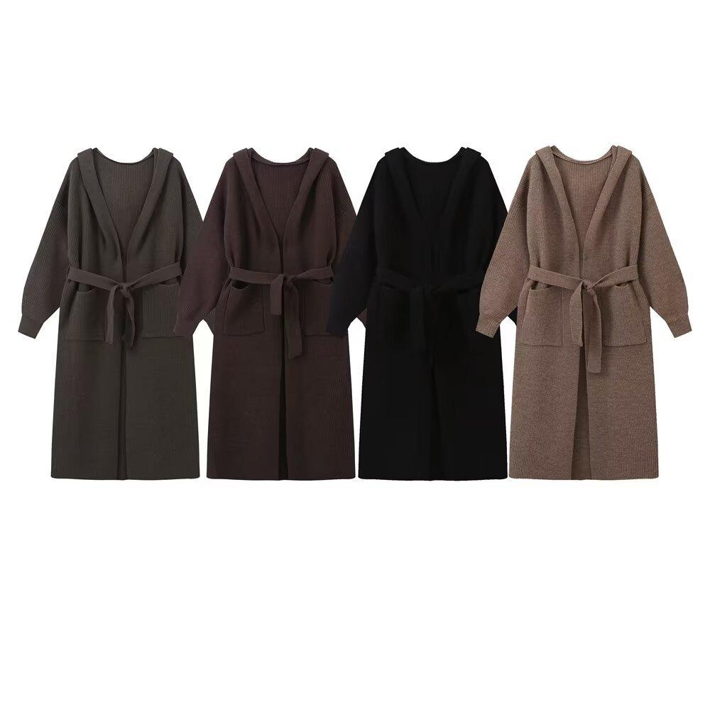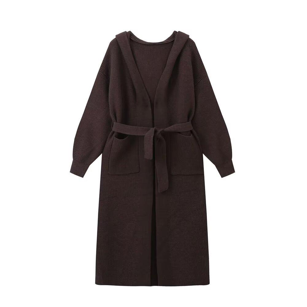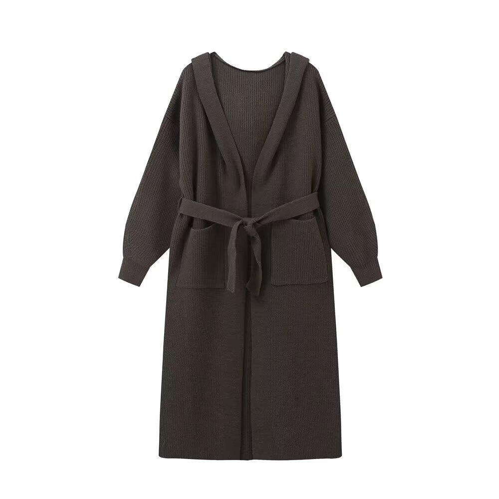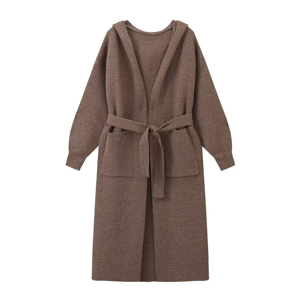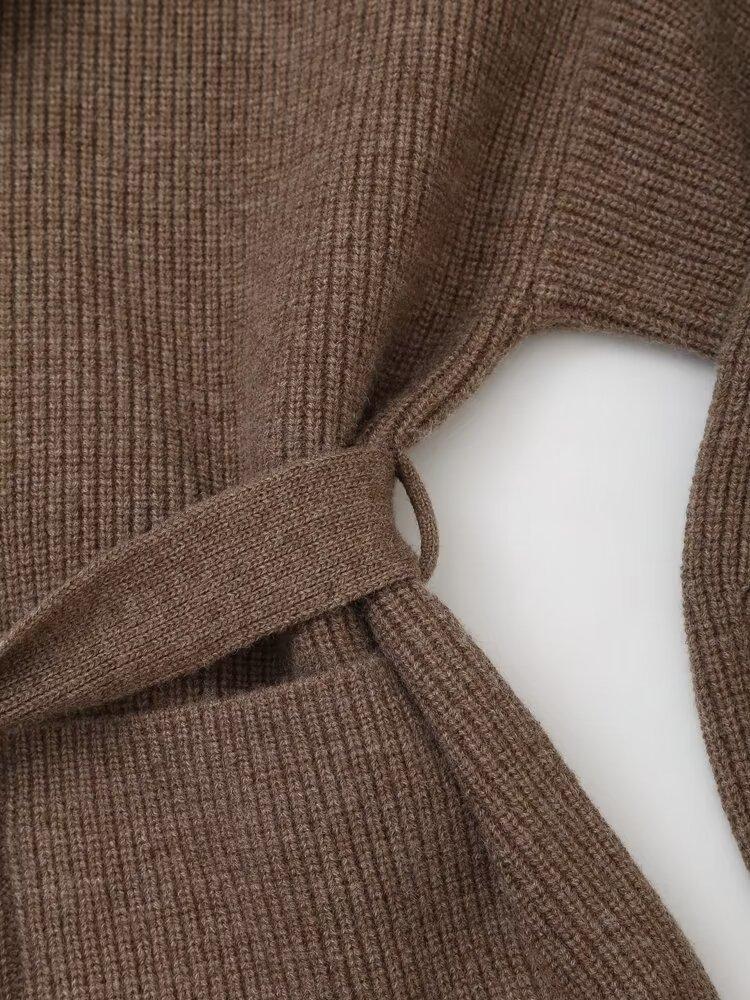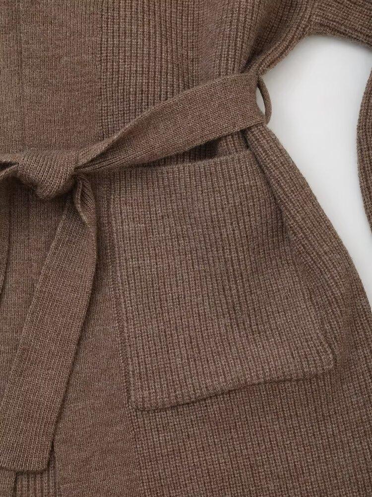 Cárdigan de moda urbana con cinturón para mujer, abrigo cálido de otoño e invierno 2024, estilo europeo y americano transfronterizo