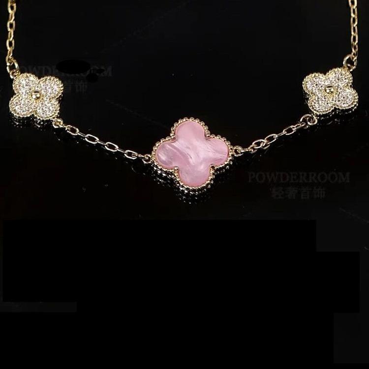 Pink Four-leaf Flower Bracelet, White Four-leaf Flower Bracelet, White Shell Flower Bracelet, Diamond four-lea...