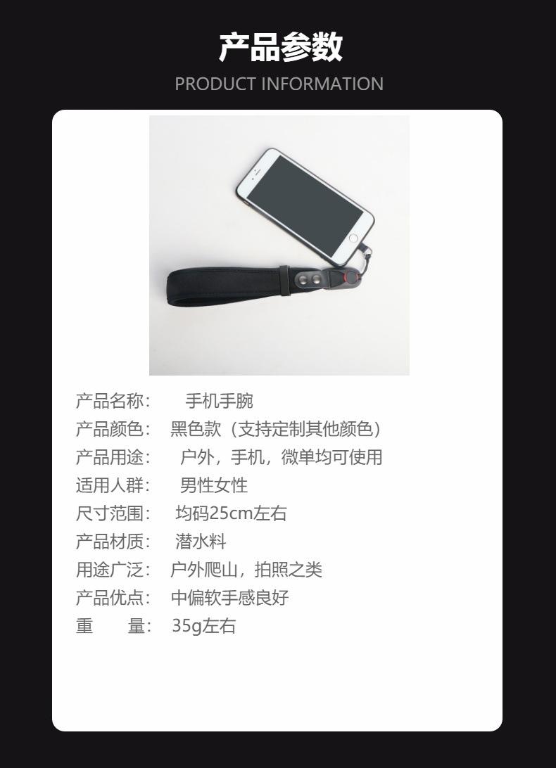 Correa de muñeca para teléfono móvil transfronteriza, negra, desmontaje rápido, duradera, ajustable, para exteriores, multiusos