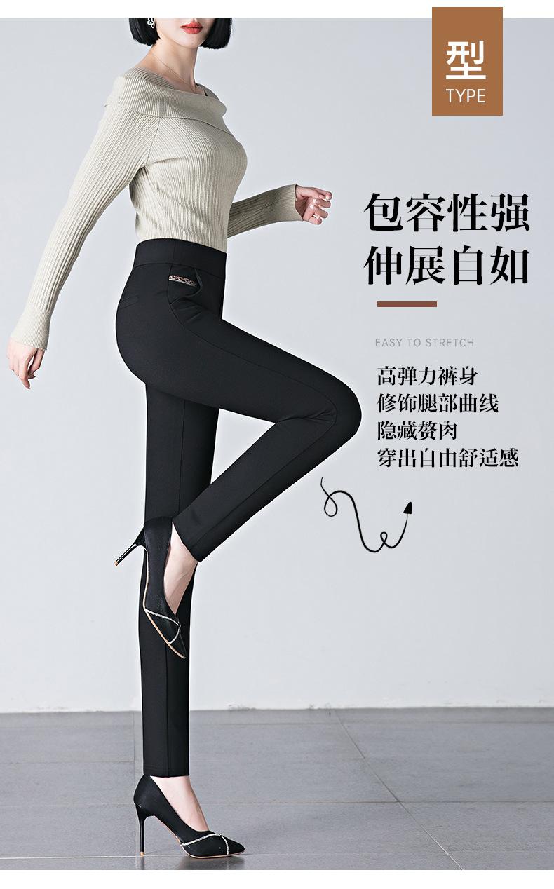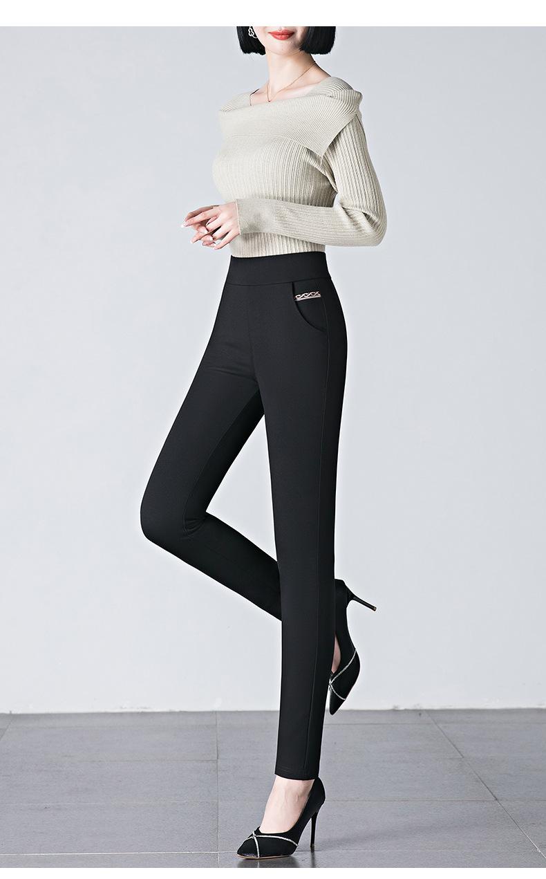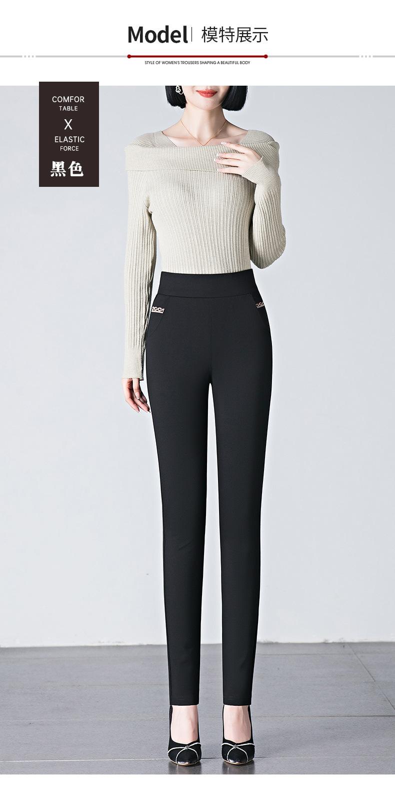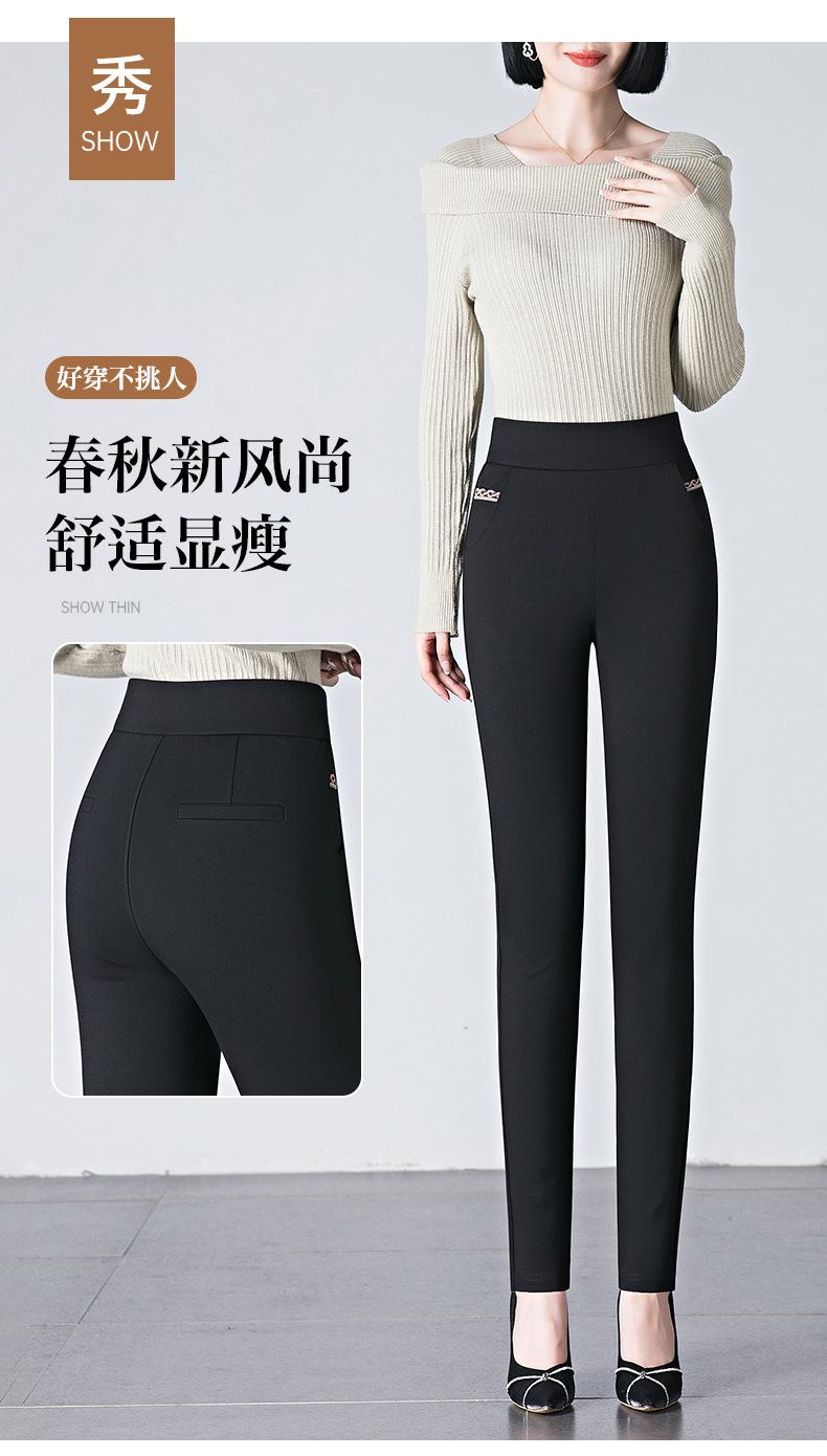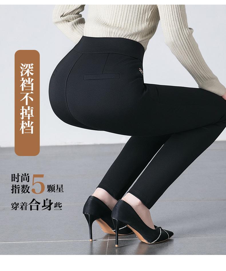 Pantalones Negros Leggings para Mujer Ropa Exterior Primavera y Otoño Ajustados Elásticos Cintura Alta Pantalones de Mamá Pantalones Lápiz Pantalones