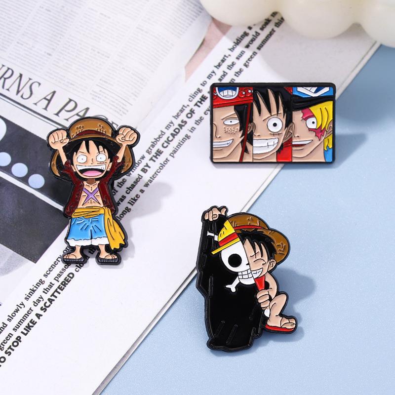 Insignia de joyería creativa con diseño de calavera pirata de Luffy, animación japonesa de dibujos animados