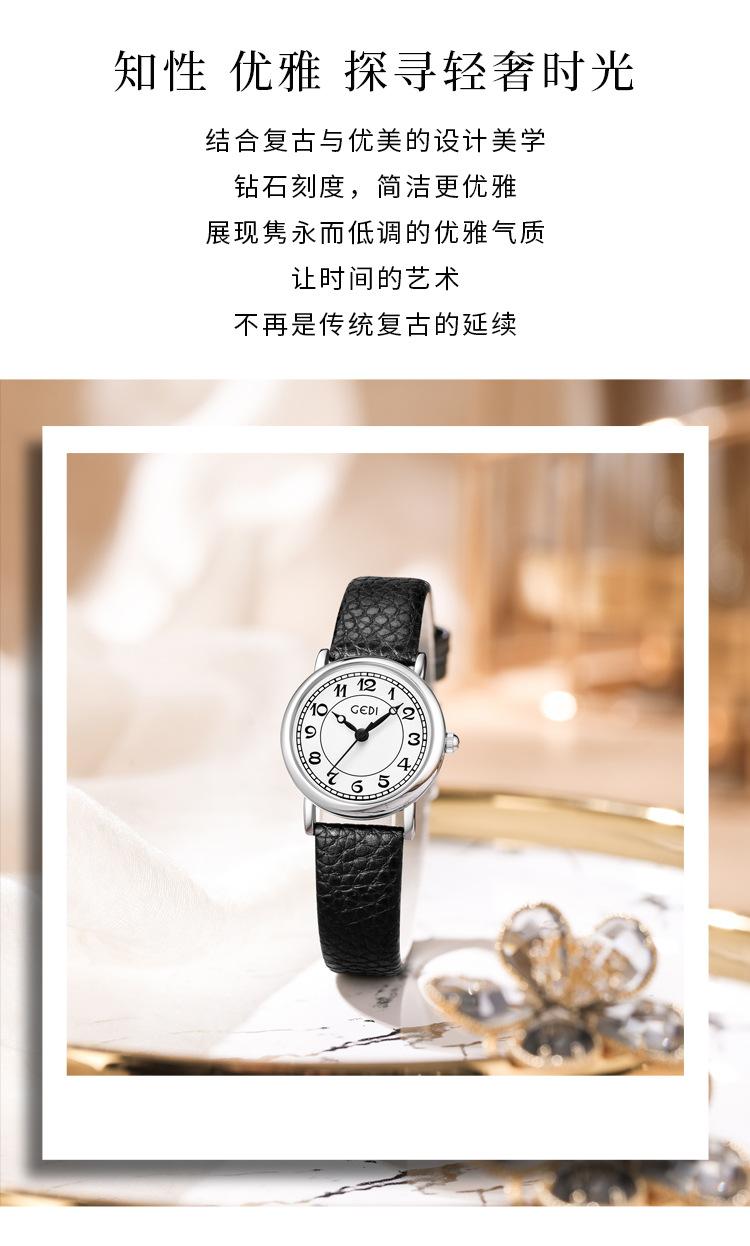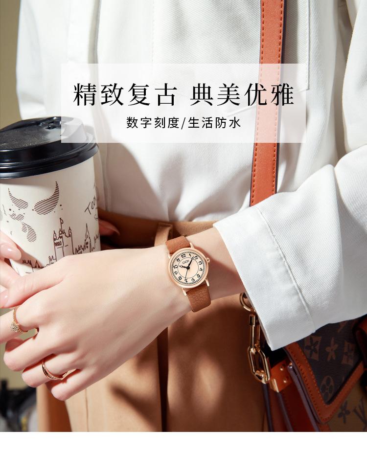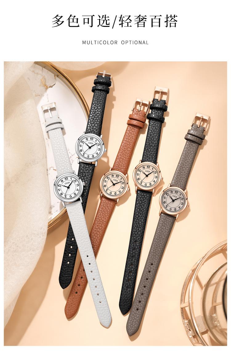 Reloj Goldie Vintage Niche para estudiantes, sencillo, de alta gama, con correa y estampado de lichi, de cuarzo, resistente al agua para mujer.