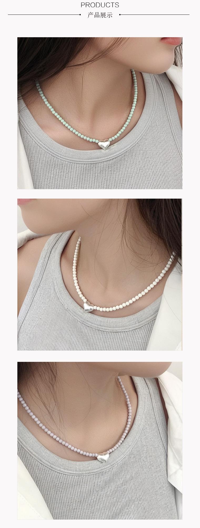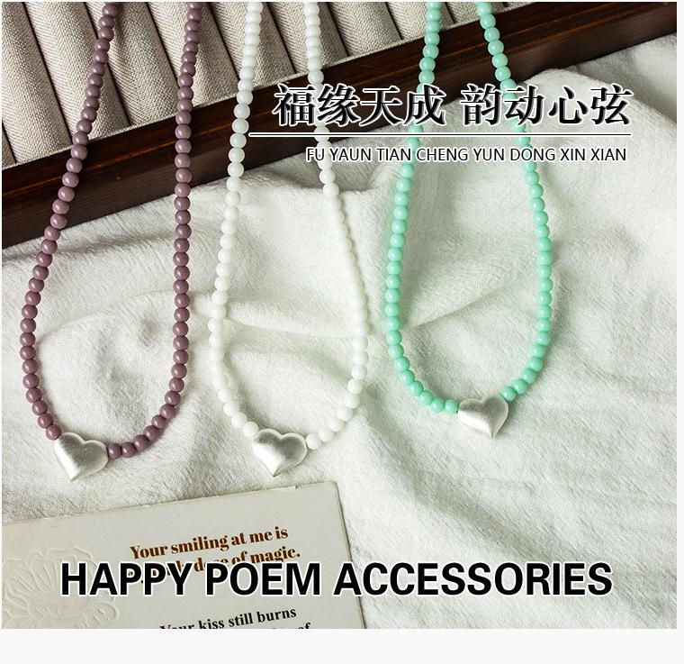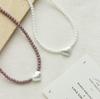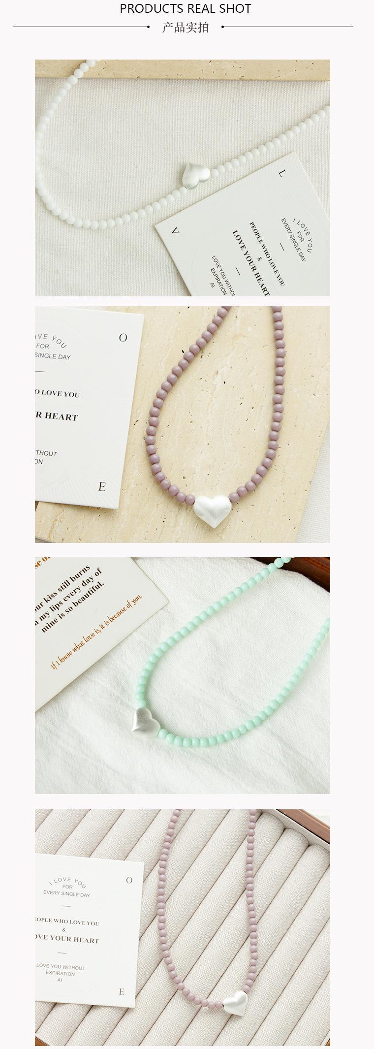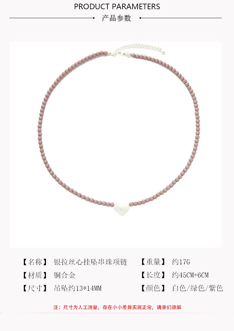 Dark pink bead brushed heart necklace, Green Bead Brushed Heart Necklace, White bead brushed heart necklace