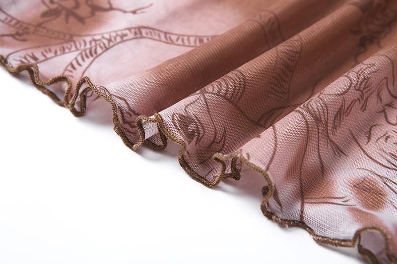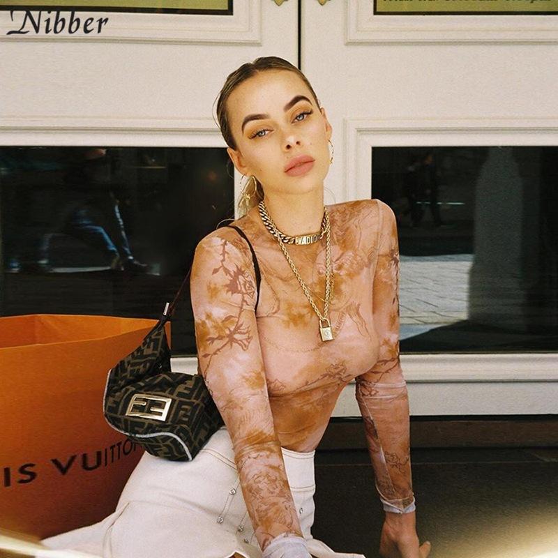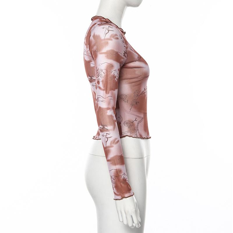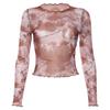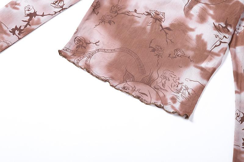 Explosiones transfronterizas 2024 estilo europeo y americano AliExpress primavera caliente nueva camiseta de malla estampada con top de madera para las orejas para mujer