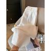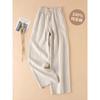 Pantalones de lino blanco de cintura alta con temperamento de estilo antiguo para mujer, pantalones holgados e informales de algodón y lino ajustados con pernera ancha, estilo otoñal