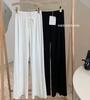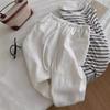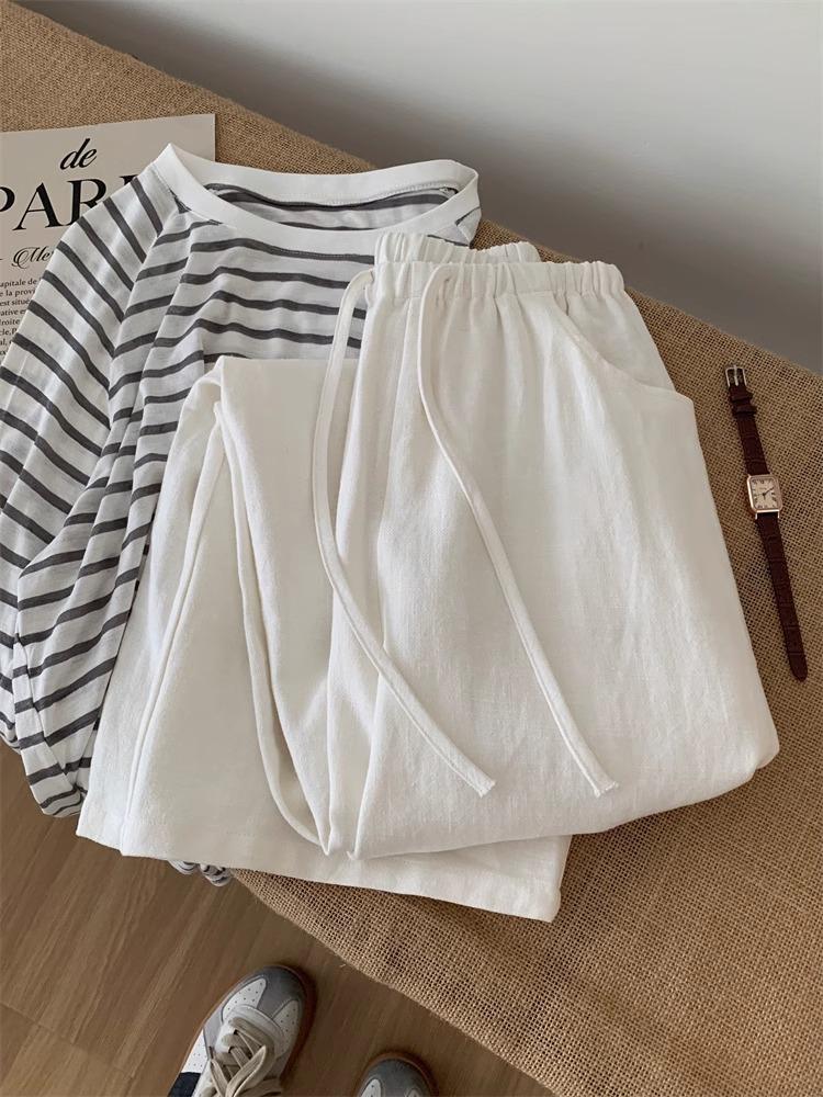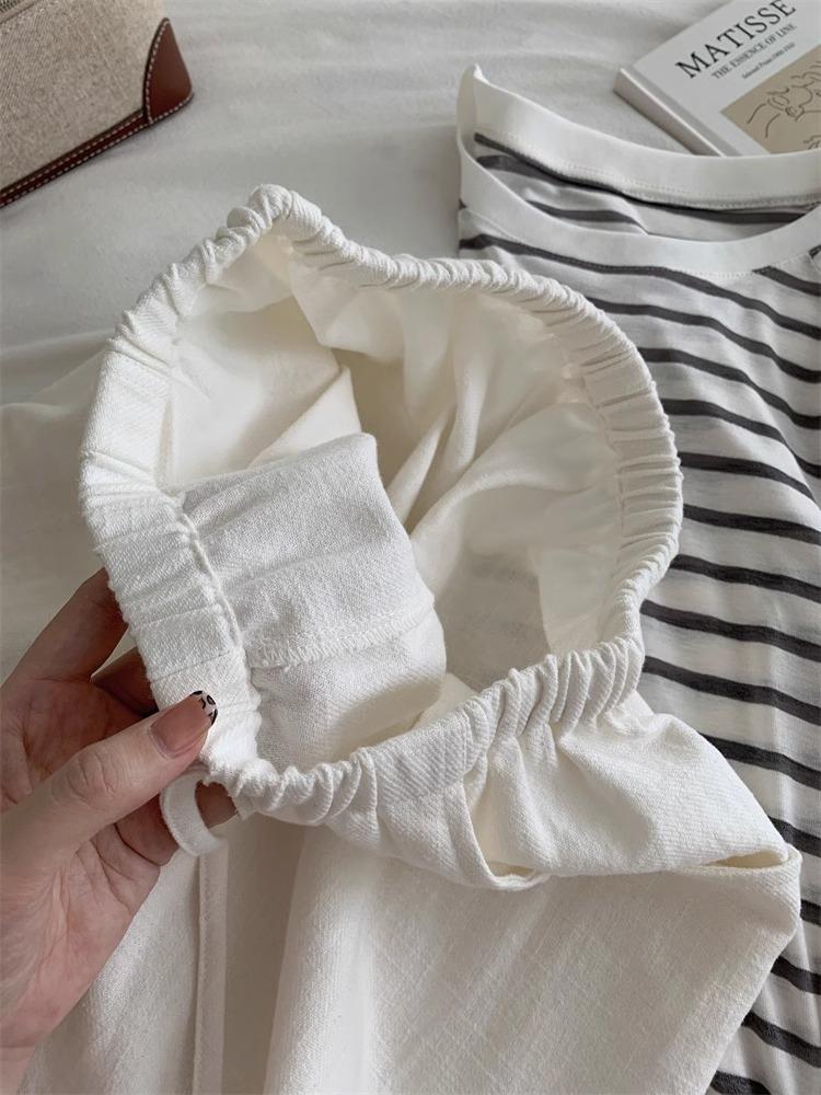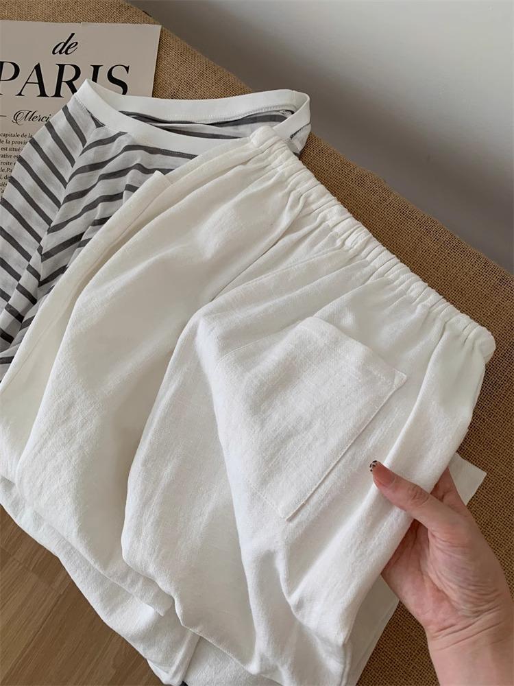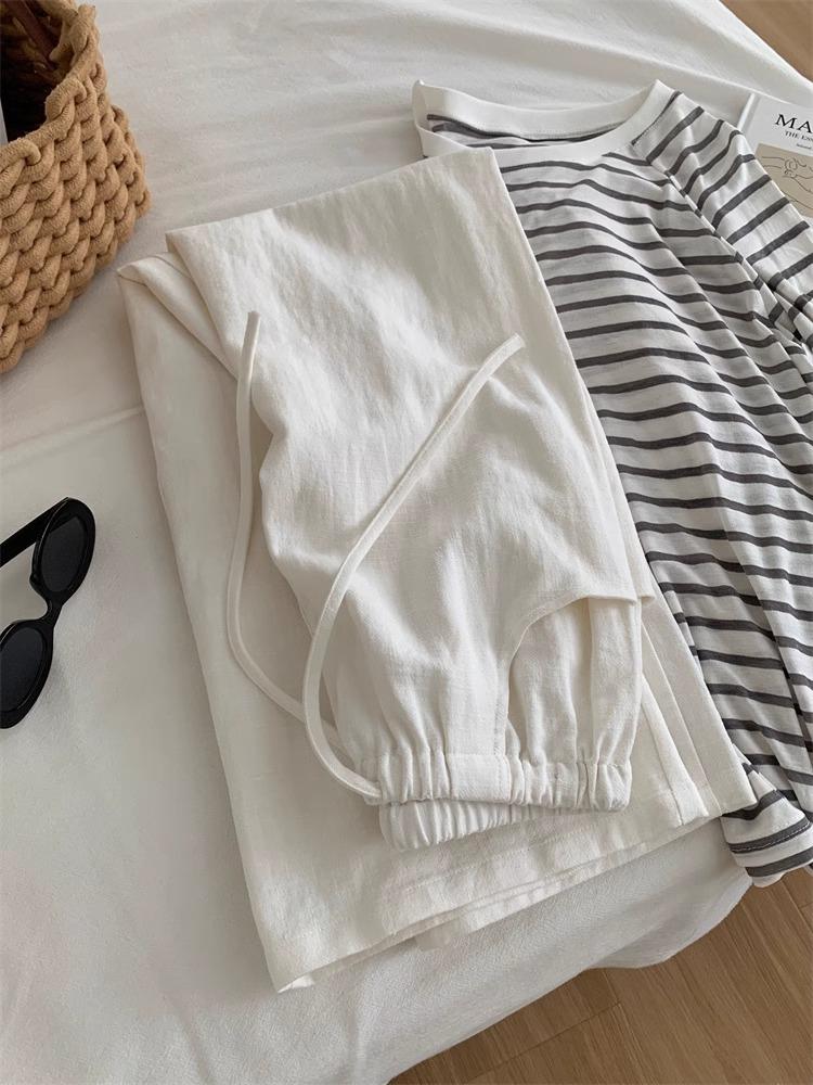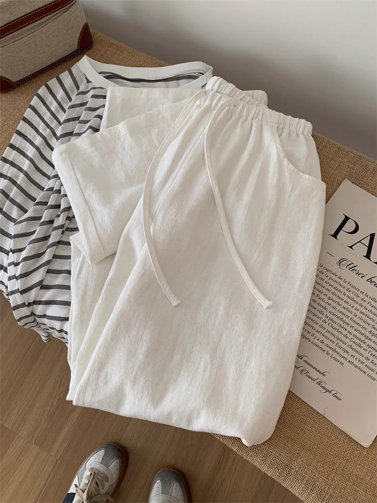 Pantalones elegantes de cintura alta, rectos, de algodón y cáñamo, blancos, para mujer, de otoño, holgados, informales, adelgazantes, con cordones y pernera ancha.