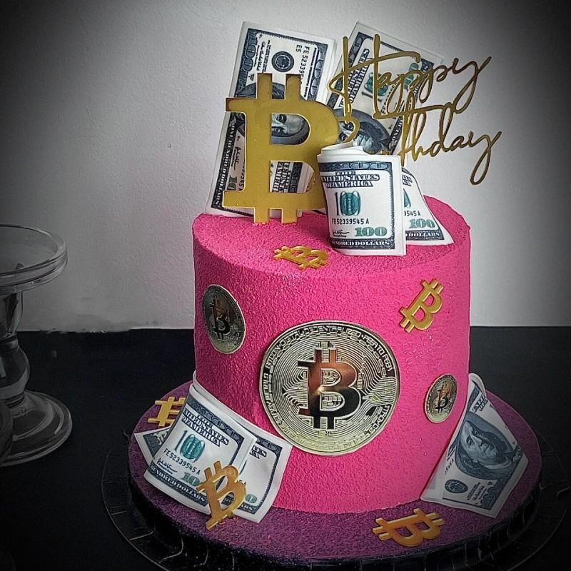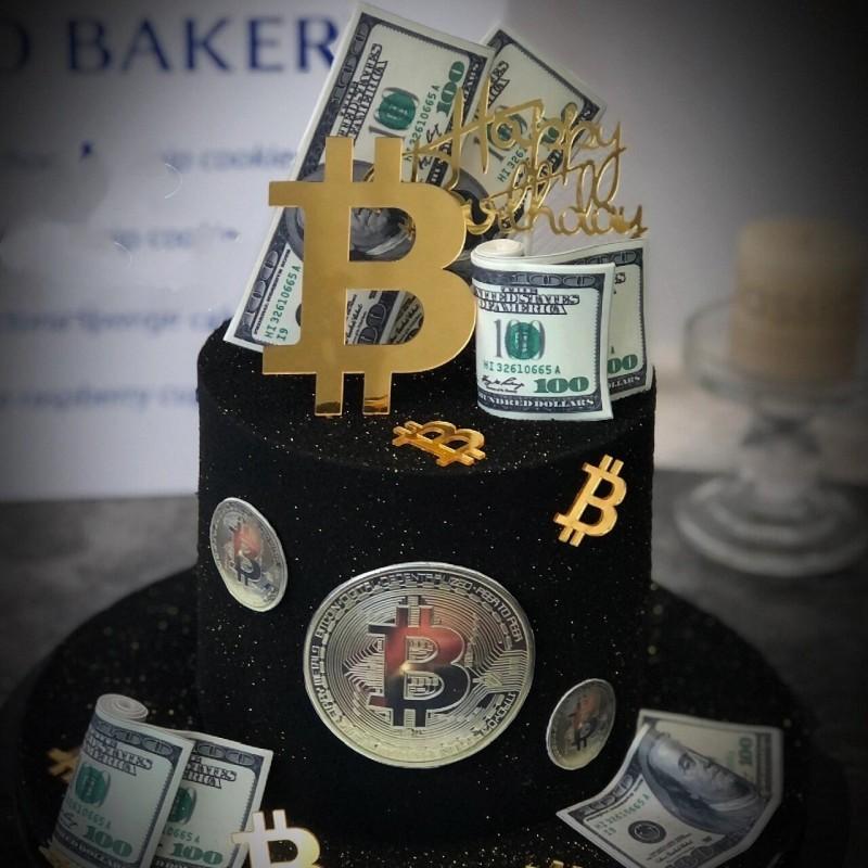 Decoración para Pastel de Hornear Acrílico Bit Decoración para Pastel Cumpleaños de Hombre Símbolo de Moneda Decoración para Pastel de Mesa de Postres