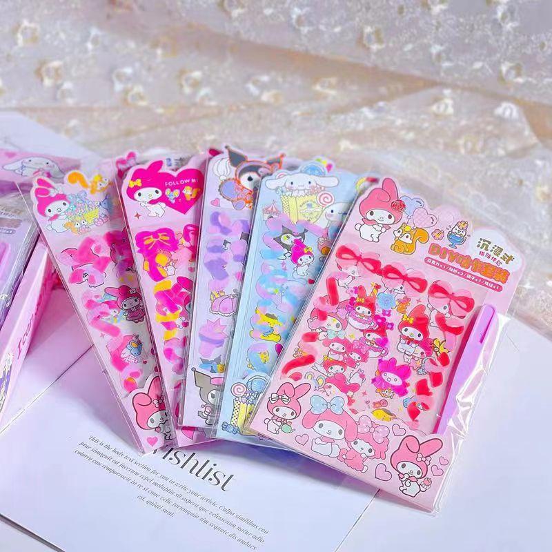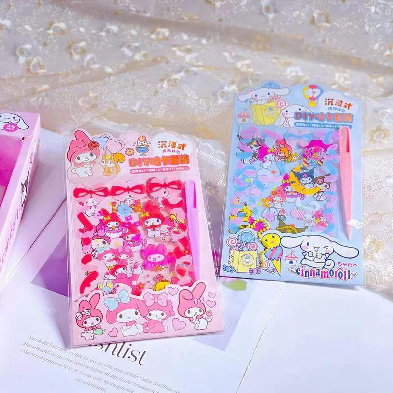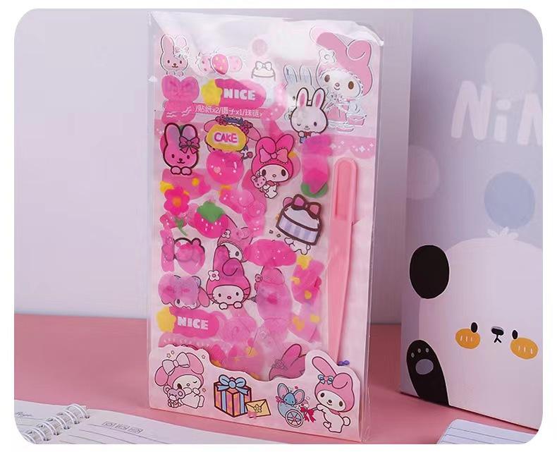 Juego de pegatinas de Sanrio Goo Card, pegatinas de cuenta de mano, pegatinas creativas para niños de Goo Chuck, pegatinas de dibujos animados de Kulomi DIY
