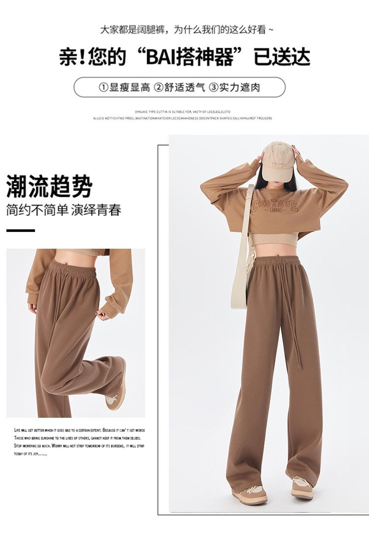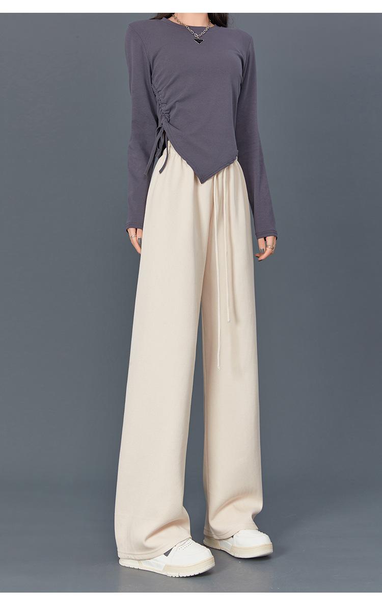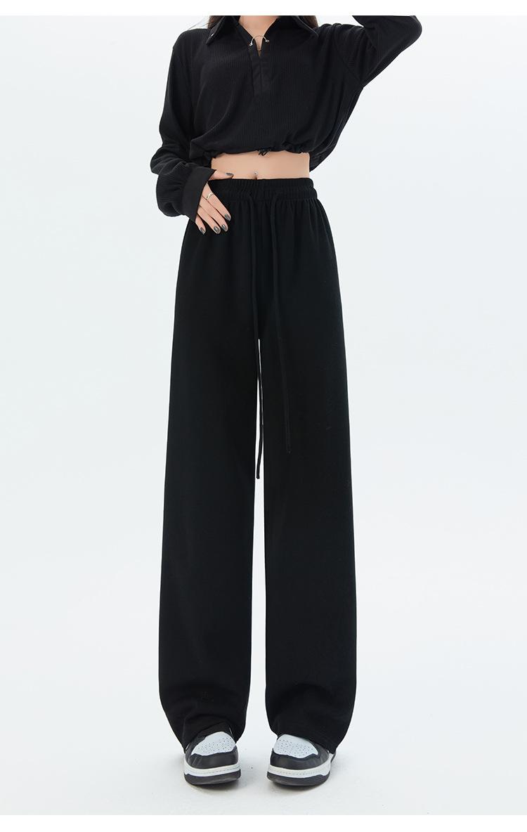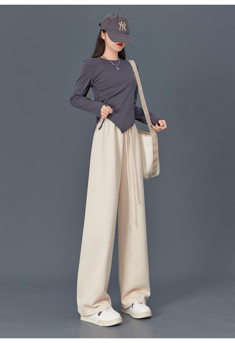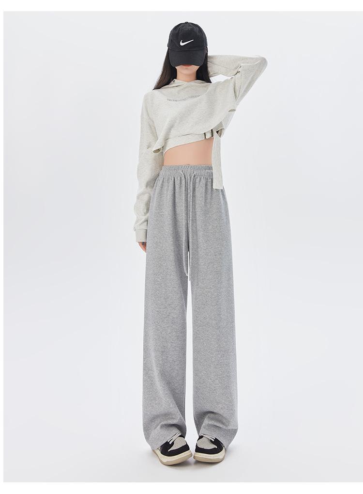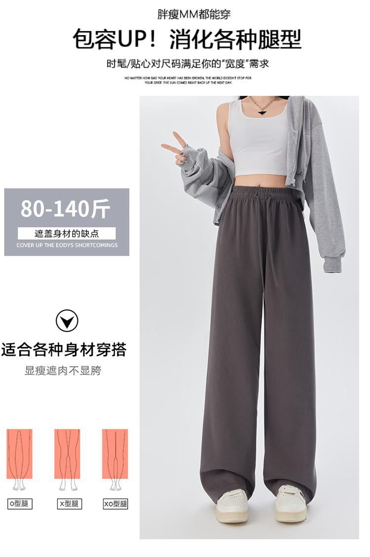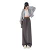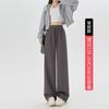 Pantalones grises de pierna ancha para mujer, Primavera y Otoño 2025 Nuevos pantalones casuales rectos sueltos, Largo hasta el suelo, Look adelgazante y pantalones deportivos con caída