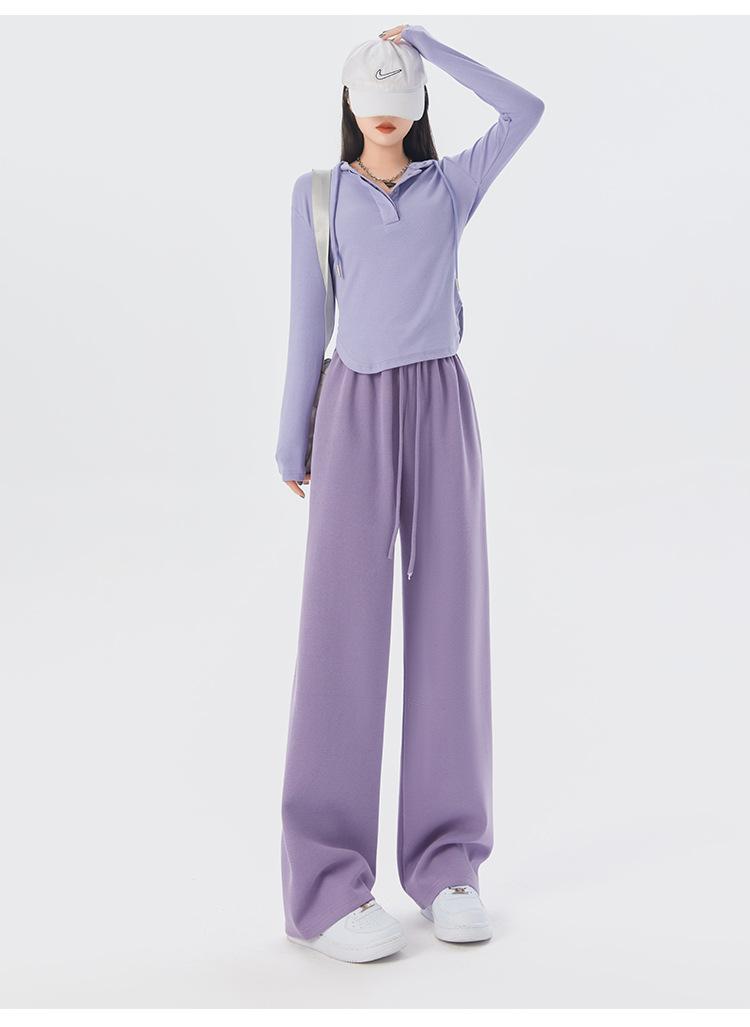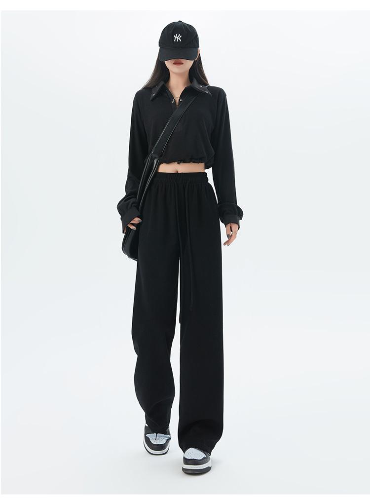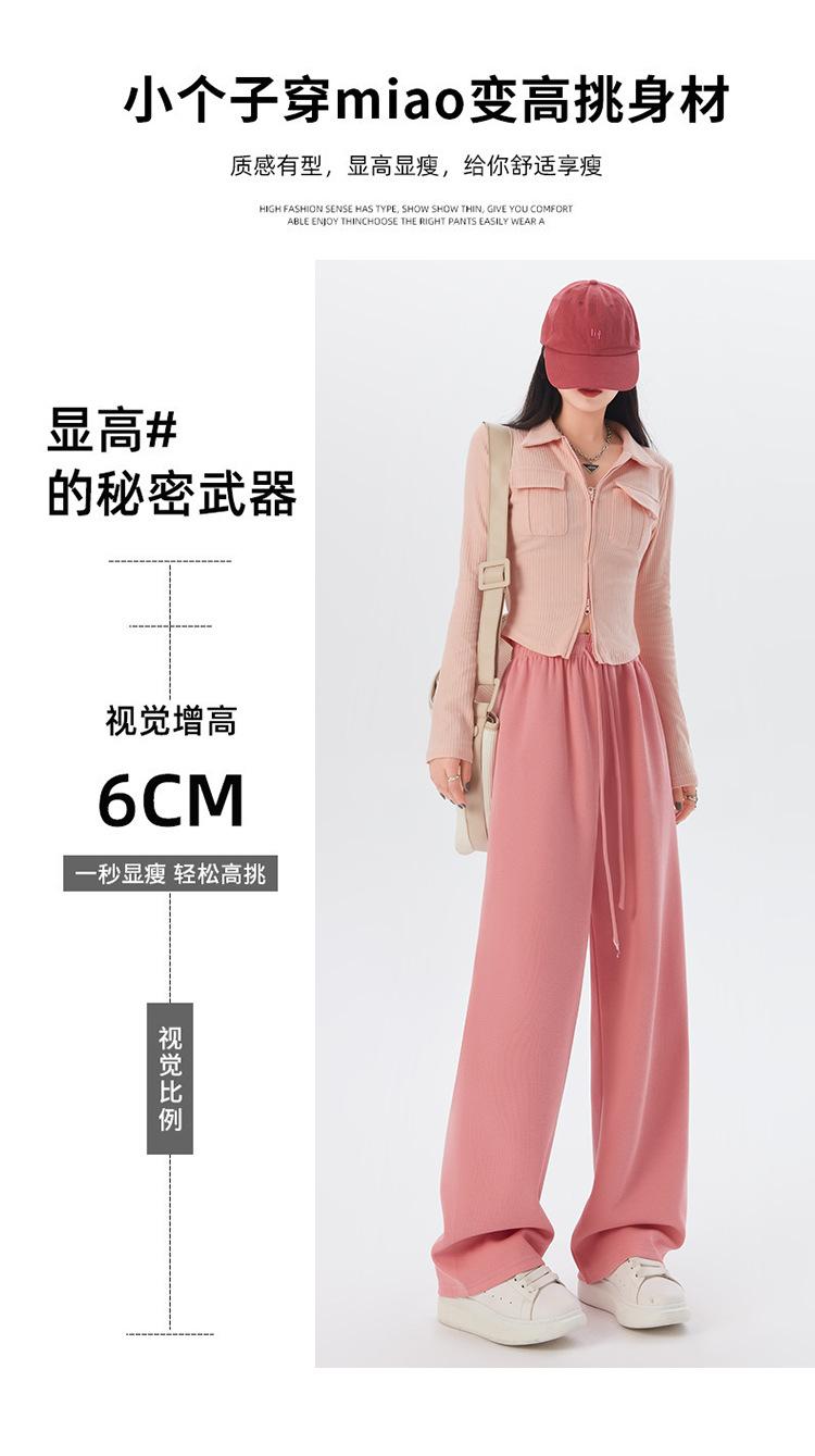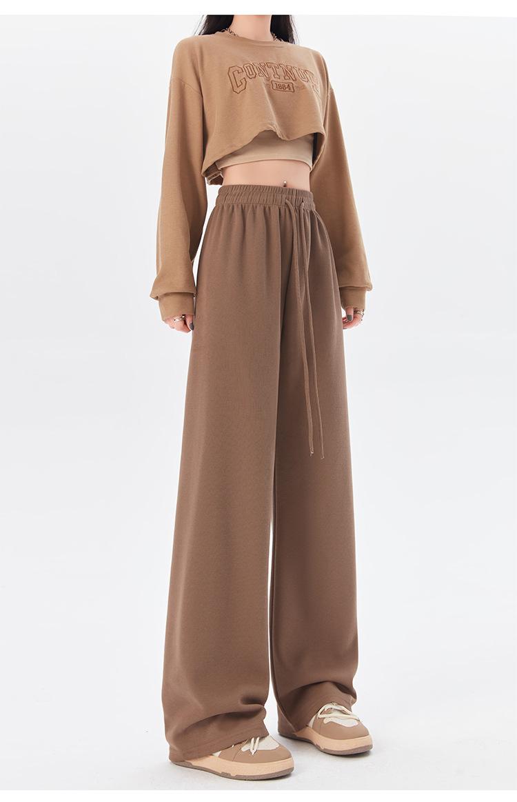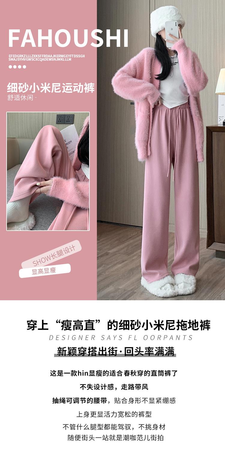 Pantalones grises de pierna ancha para mujer, Primavera y Otoño 2025 Nuevos pantalones casuales rectos sueltos, Largo hasta el suelo, Look adelgazante y pantalones deportivos con caída