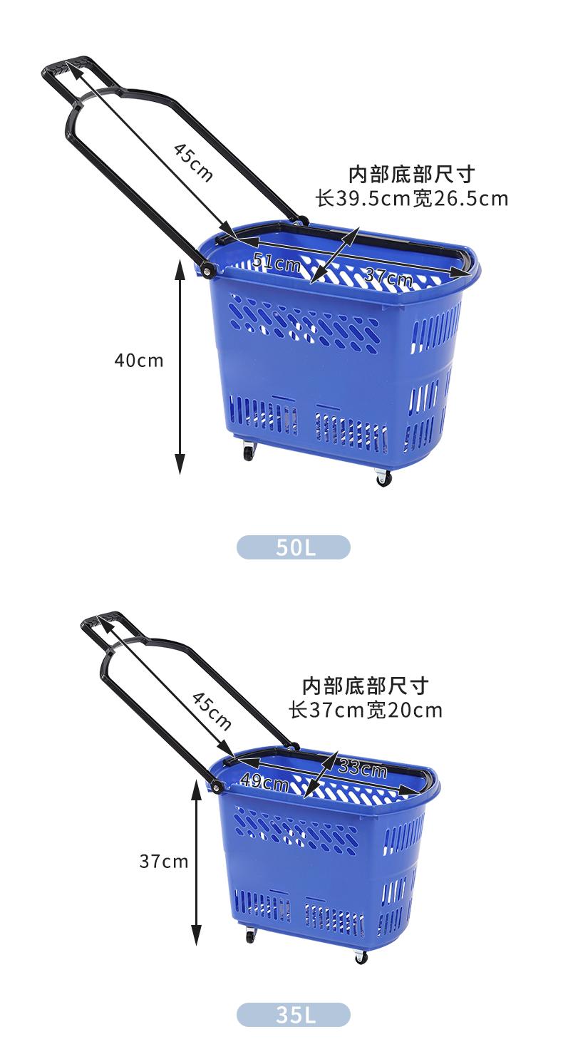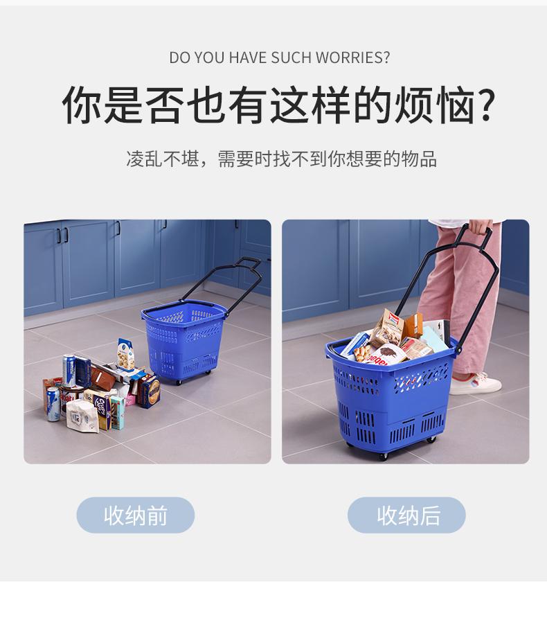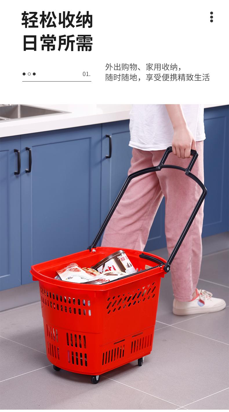 Cesta de compra de supermercado engrosada KE3C, carrito extra grande con ruedas, cesta de compra de plástico, carrito rojo
