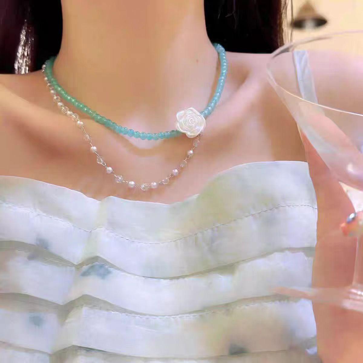 X4074 Perla de imitación circonita Longitud 39cm+5cm Longitud de la perla pequeña central 29.5cm Peso 5g