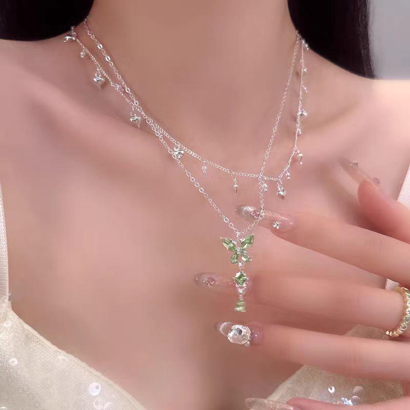 Aleación X3999 cadena de corazón pequeño longitud 37.5cm +5cm mariposa longitud 39.5cm +5cm peso 9g