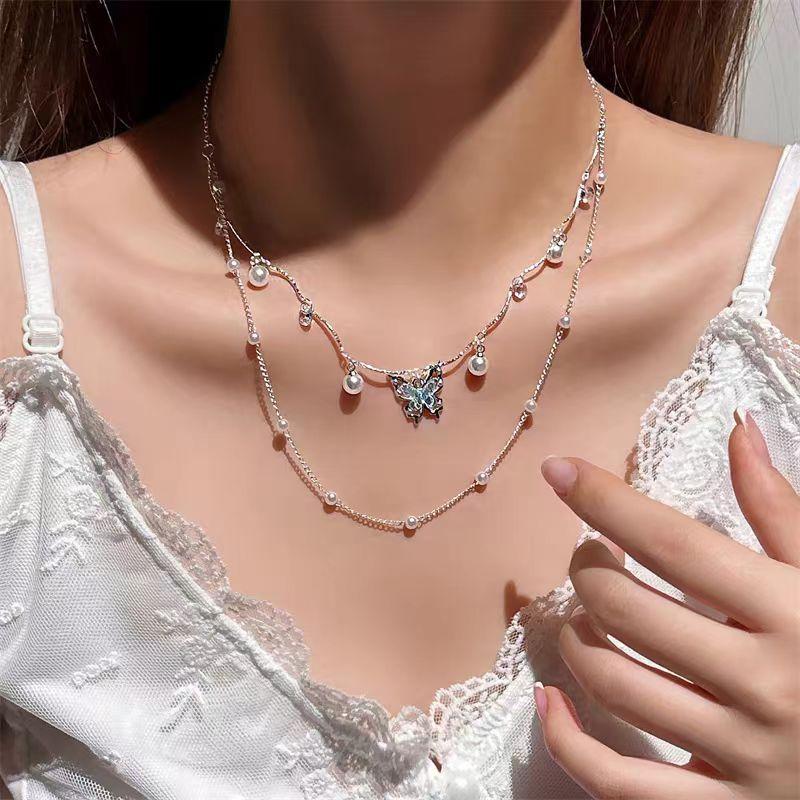 X4010 Collar hecho a mano Perla de imitación Longitud 37cm+5cm Mariposa pequeña Longitud 45cm Peso 7g