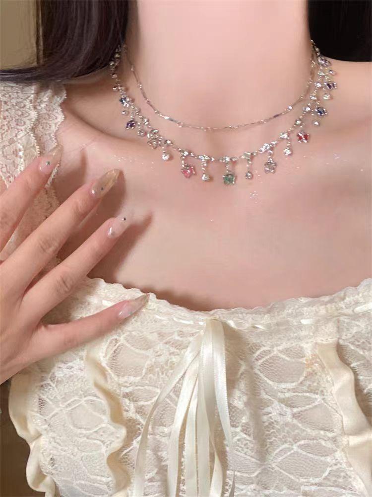 X3987B Cuentas de cristal artificial Cadena de un diamante longitud 39cm+5cm Longitud de la cuenta pequeña 40cm+5cm Peso 28g
