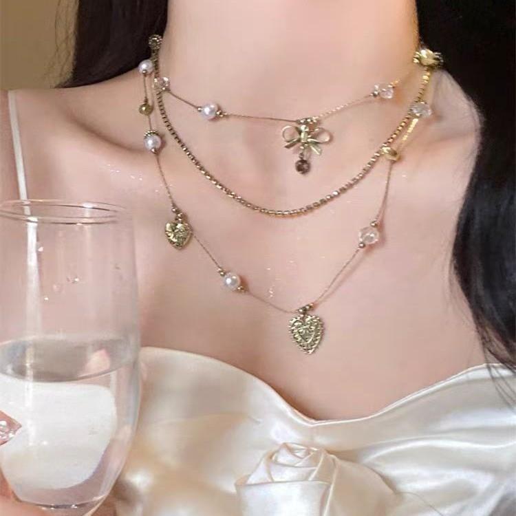 X3953 Perla de imitación, circonita, acrílico, cobre, mariposa pequeña 37cm de largo, diamante pequeño 43.5cm de largo, corazón pequeño 50cm de largo, peso 15g