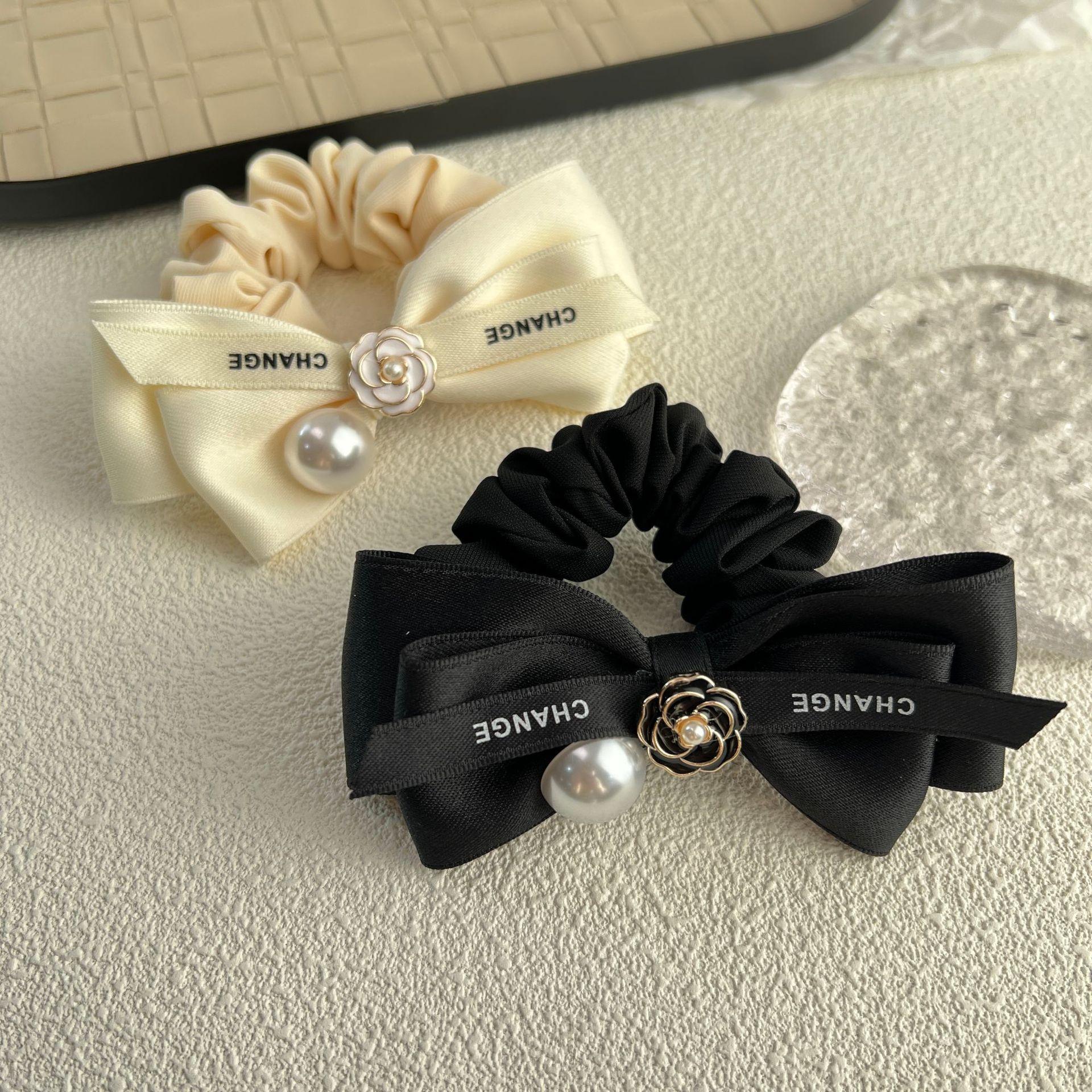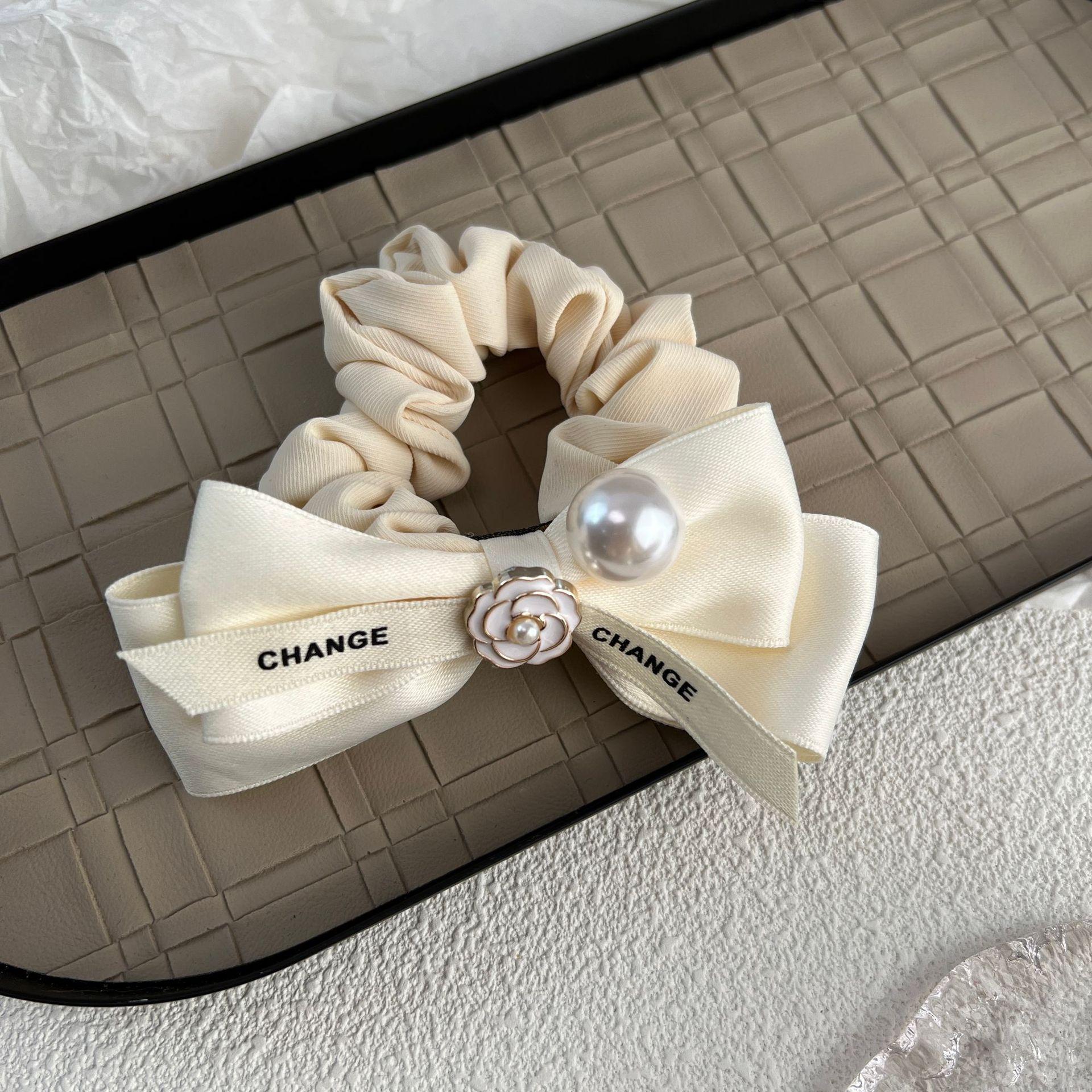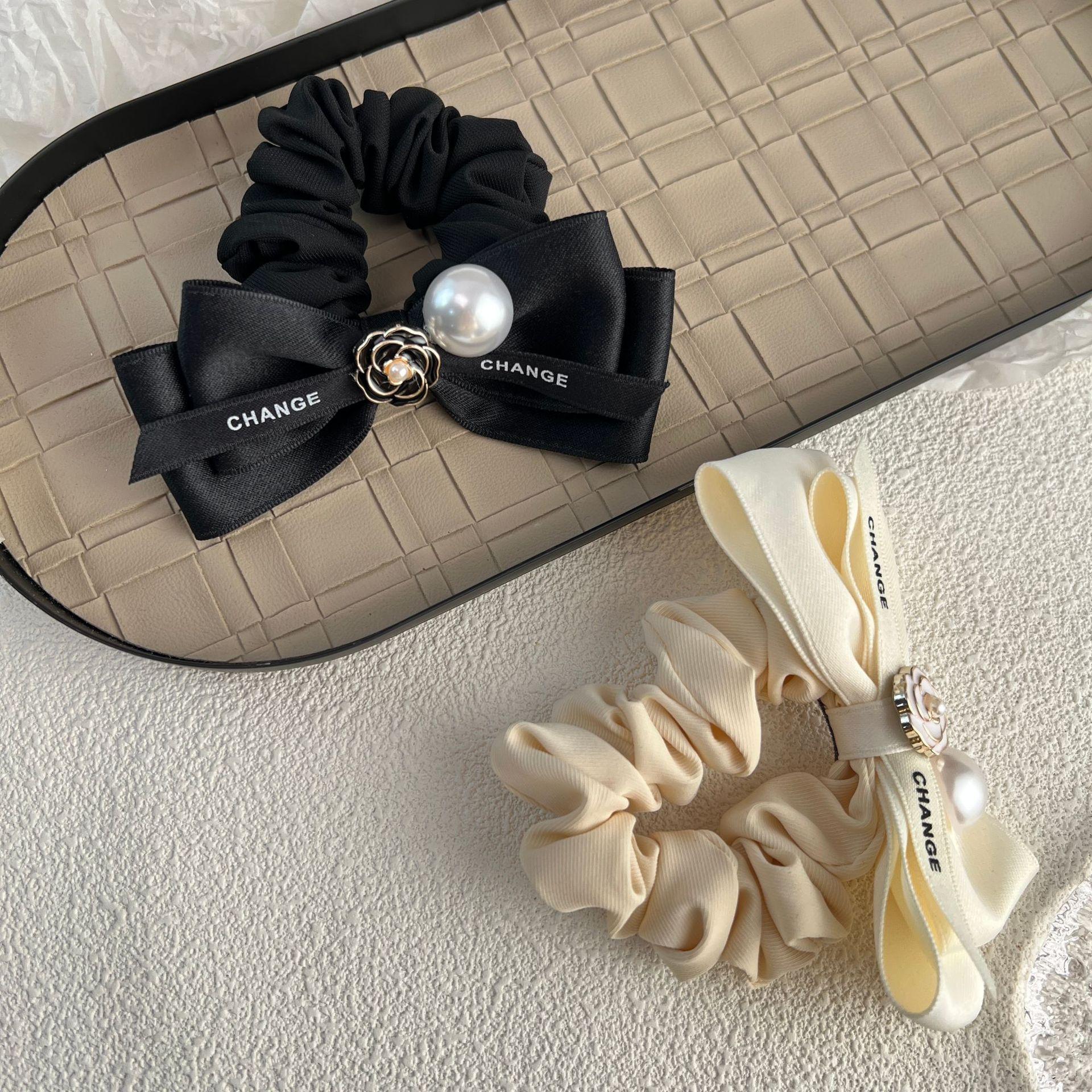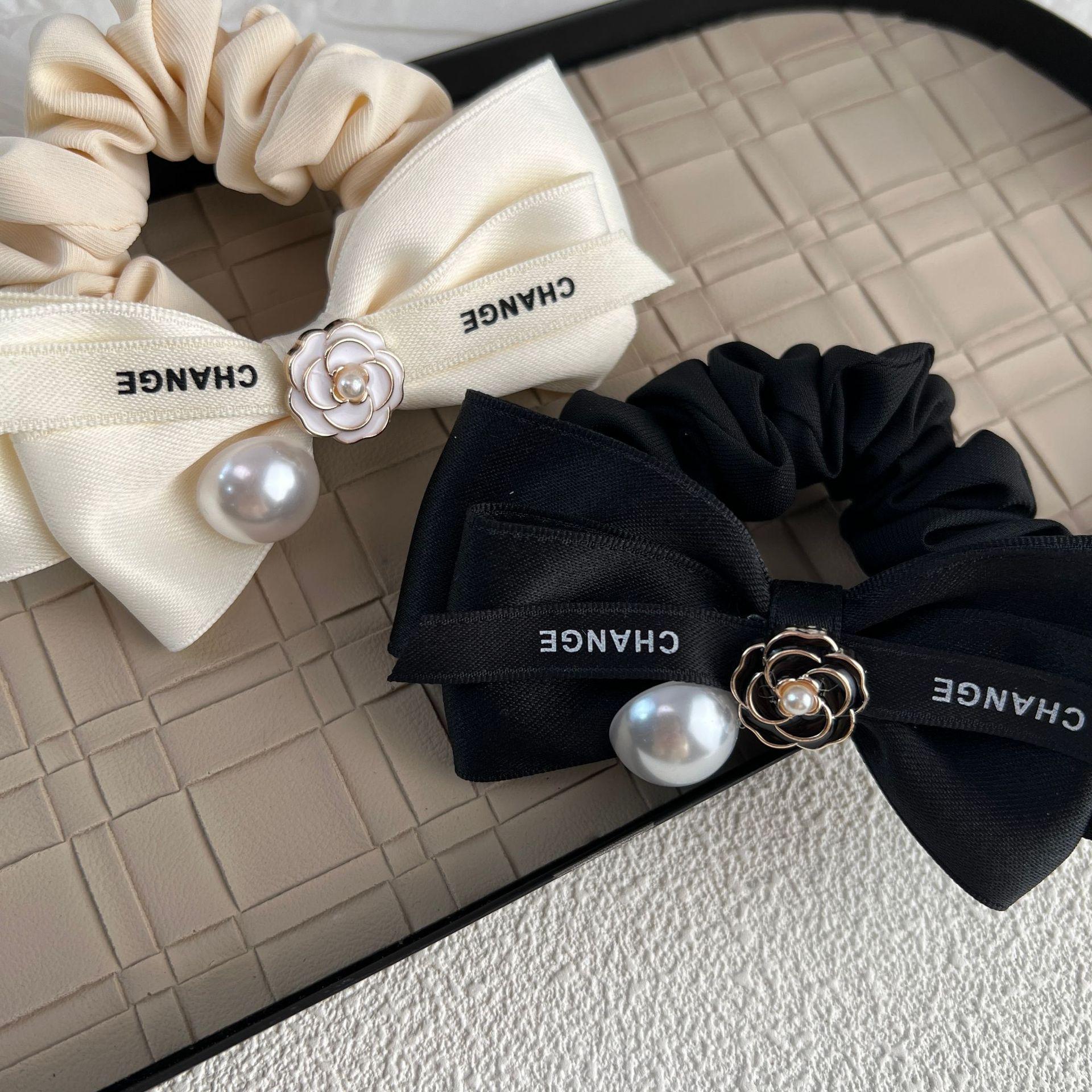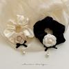 Diadema de tela con lazo de camelia para el pelo de intestino grueso, estilo otoño e invierno, estilo dulce y sencillo, con perlas