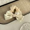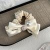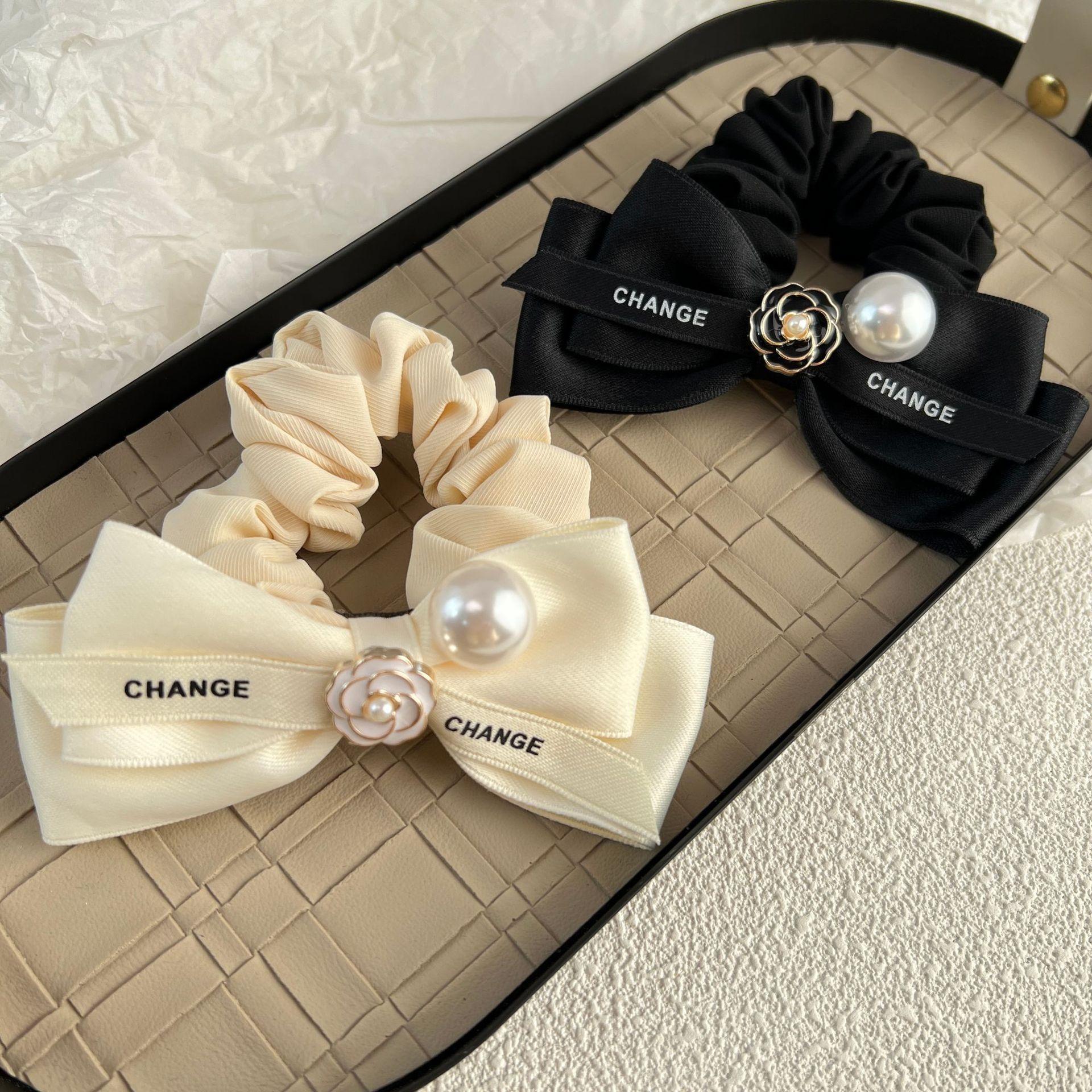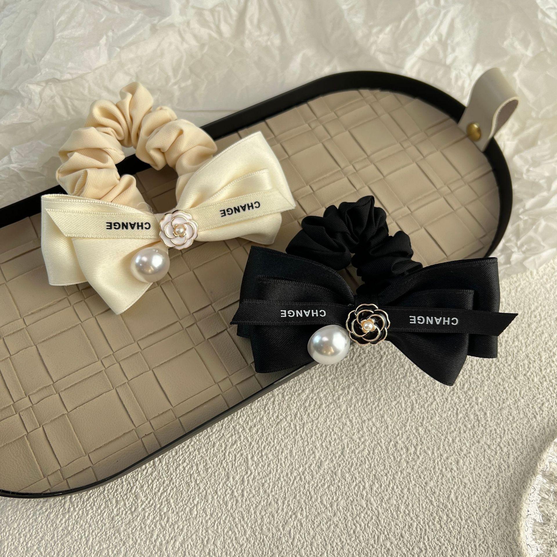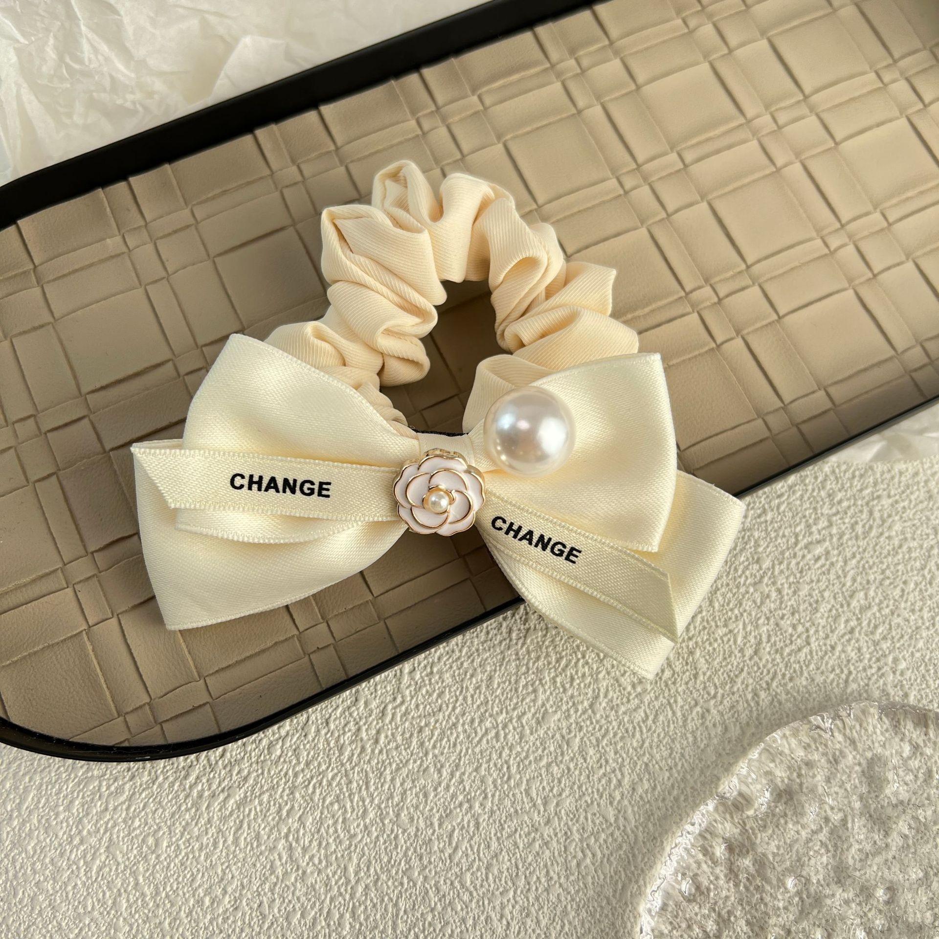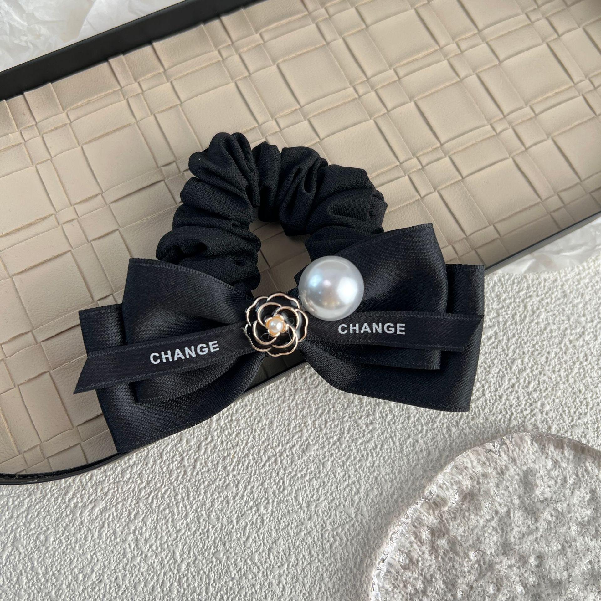 Diadema de tela con lazo de camelia para el pelo de intestino grueso, estilo otoño e invierno, estilo dulce y sencillo, con perlas