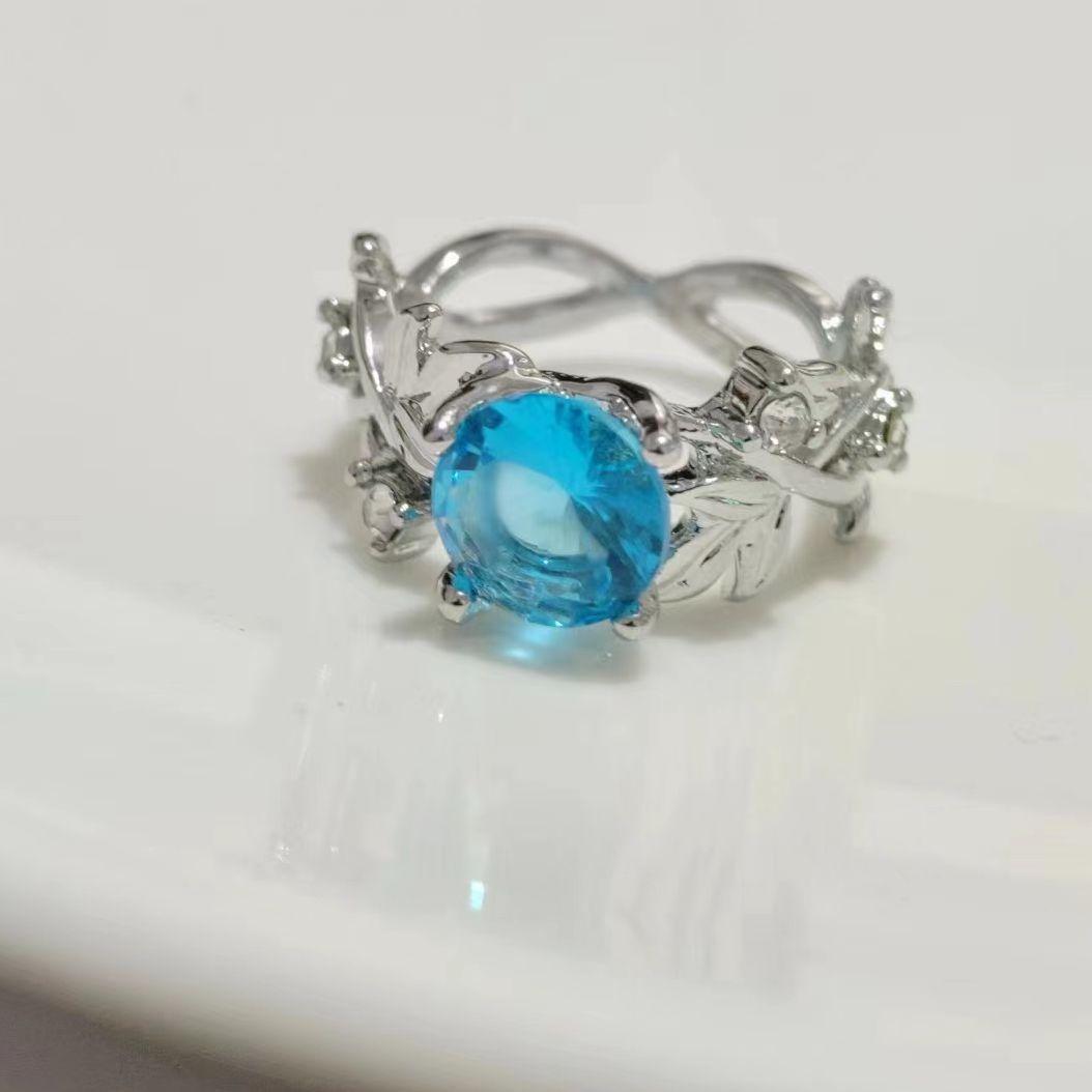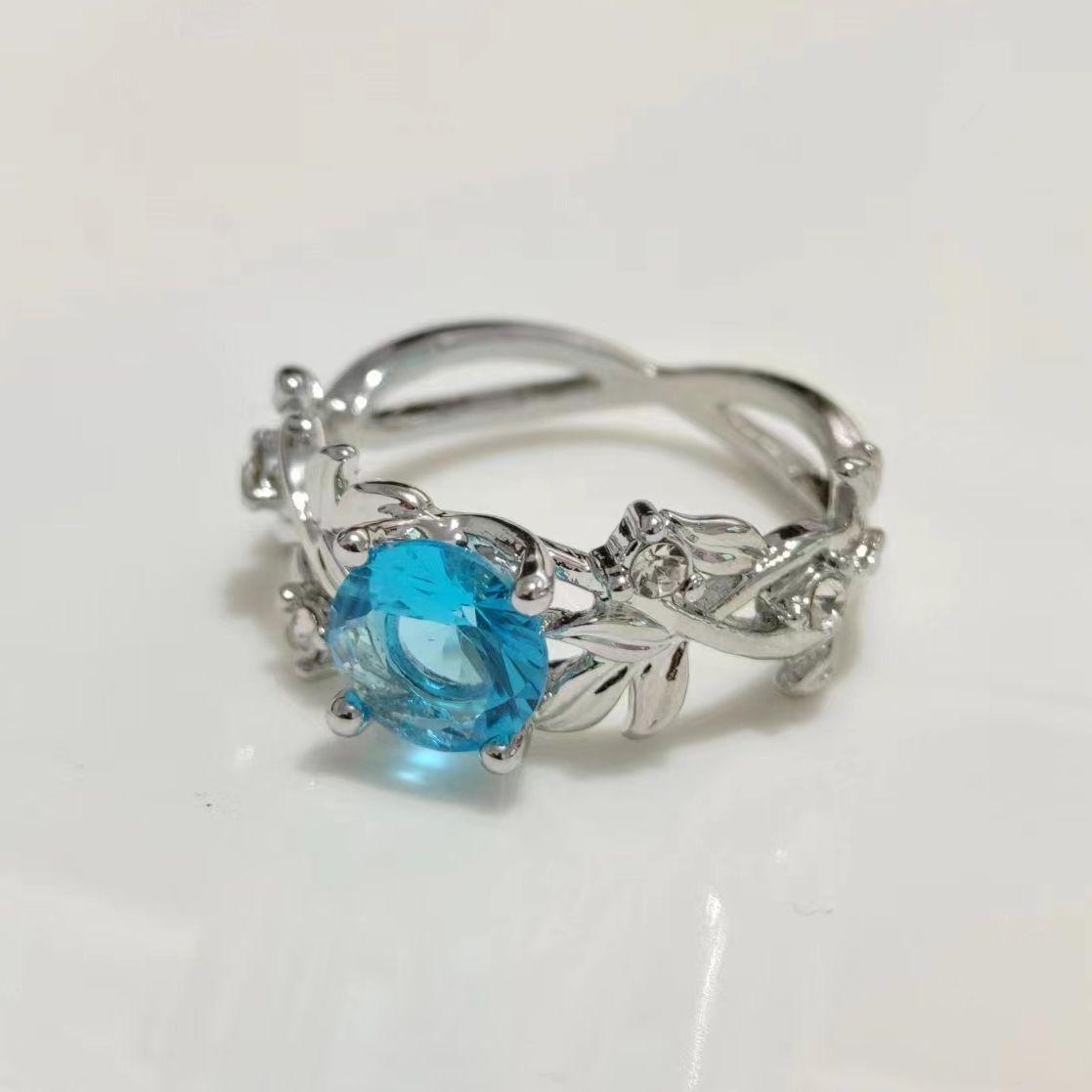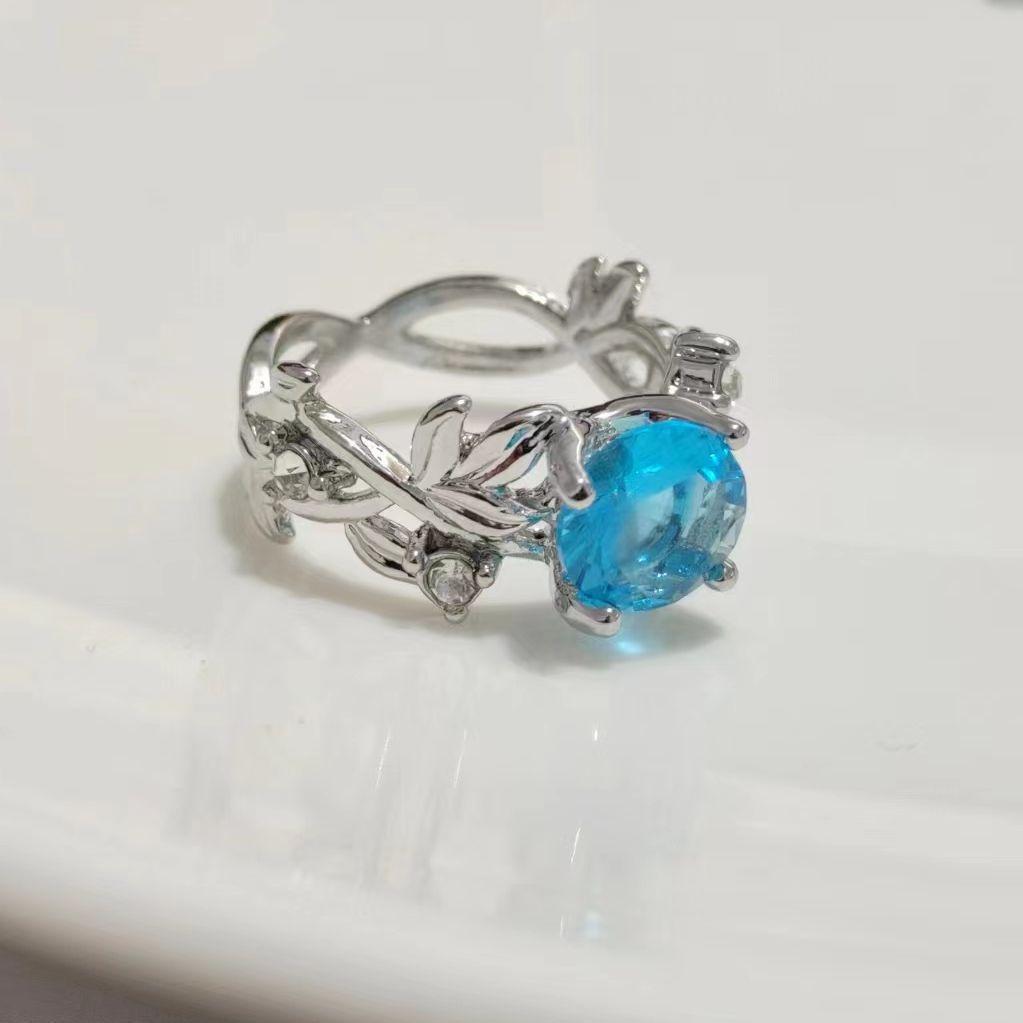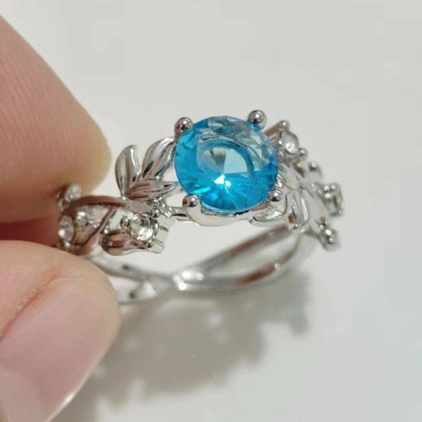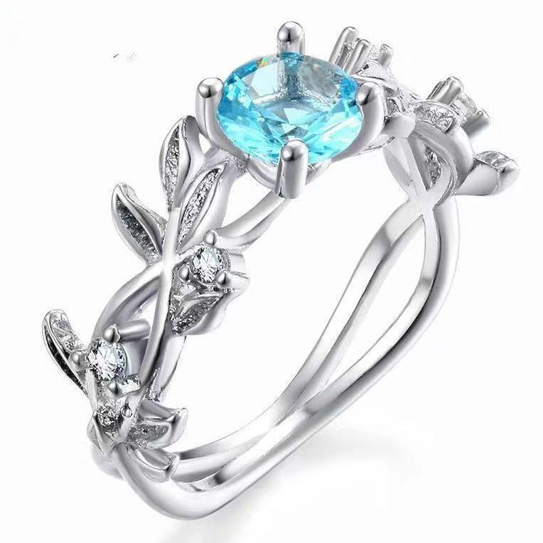 Nueva pulsera europea y americana con anillo de rama de aguamarina, flor de la suerte, hoja de ratán, propuesta de cumpleaños, joyería de compromiso al por mayor