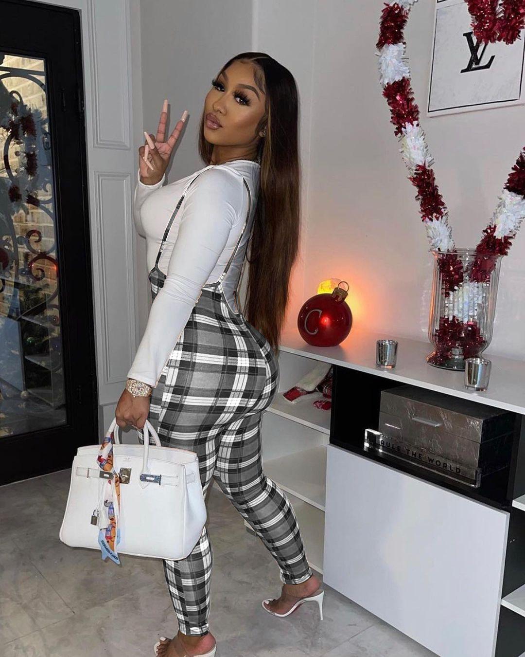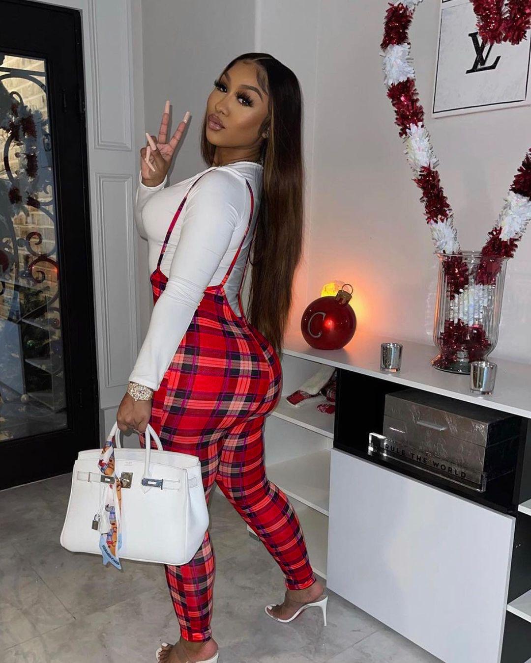 2021 ropa de mujer transfronteriza estación independiente talla grande ropa de mujer madre temperamento Amazon a cuadros manga larga mono europeo y americano