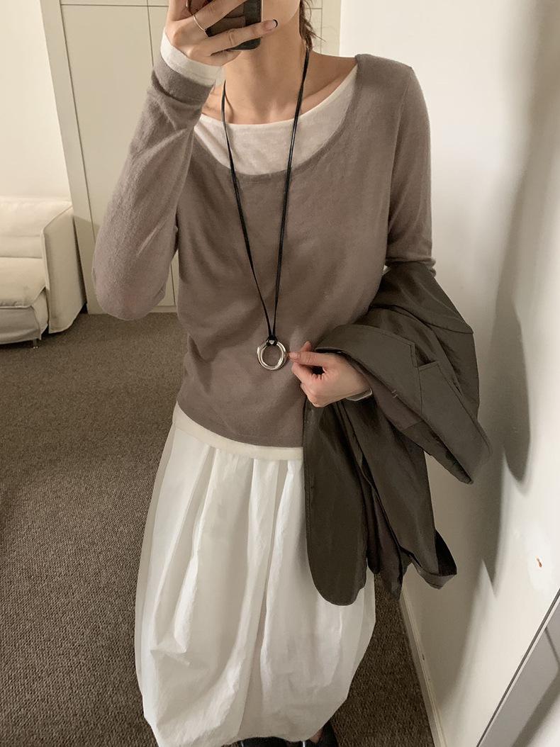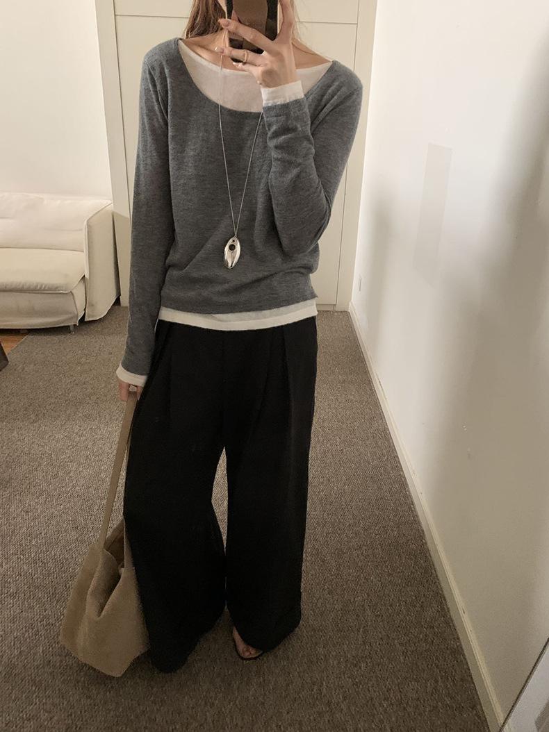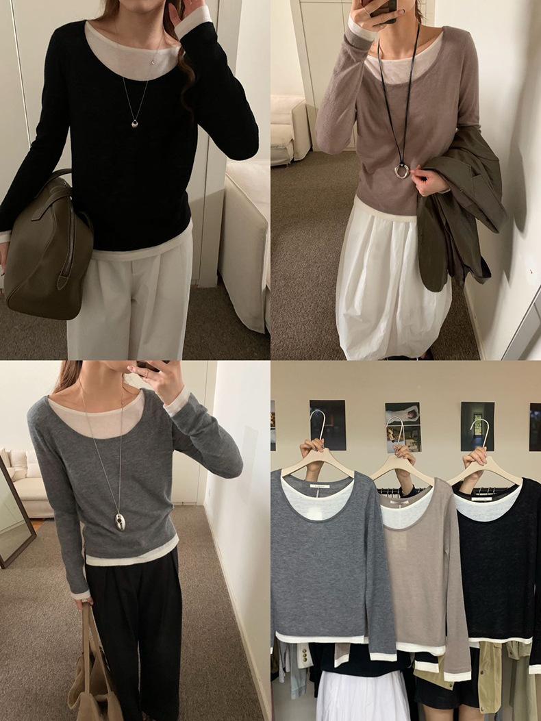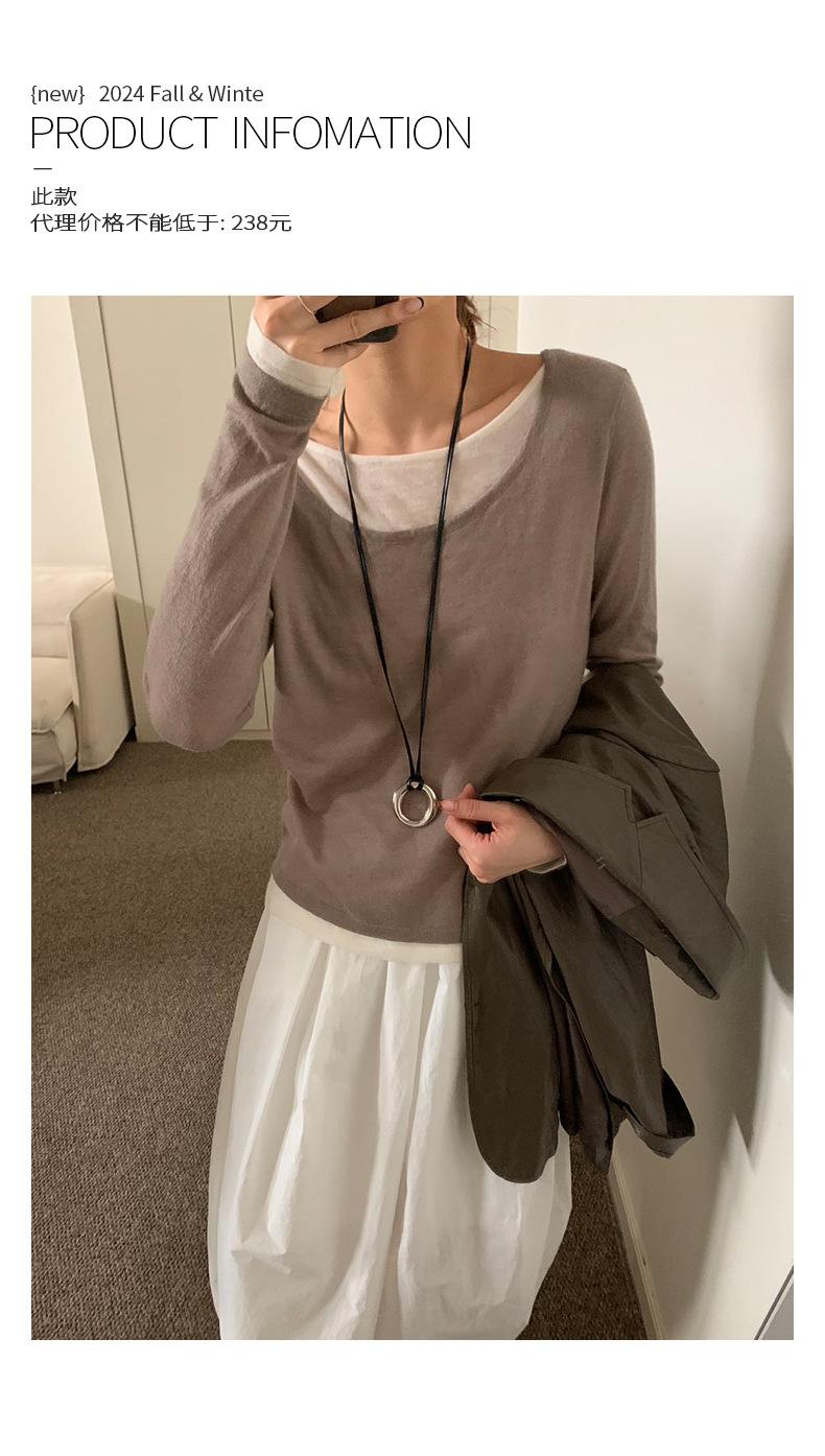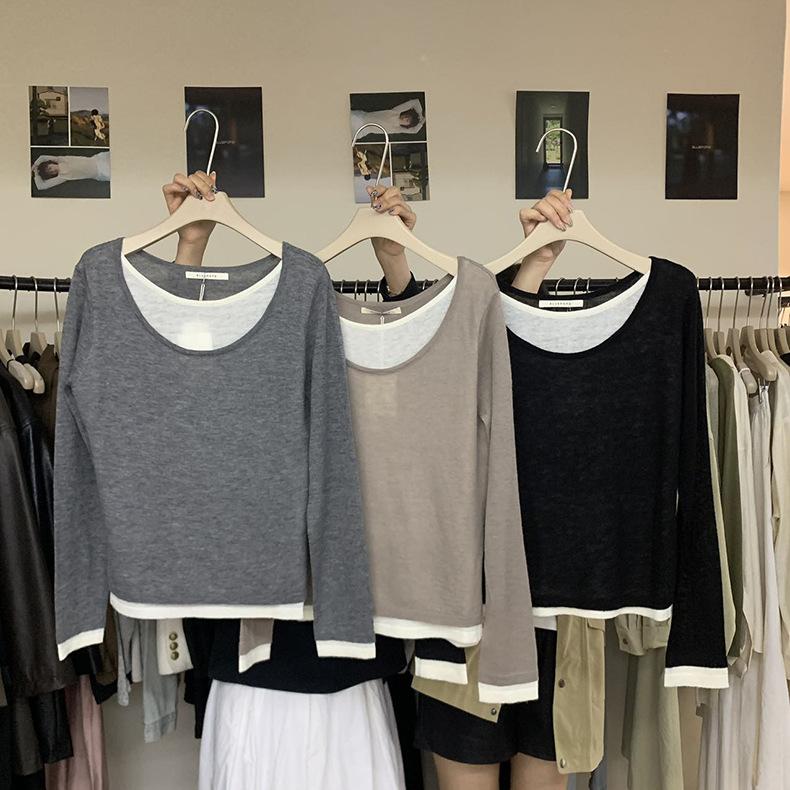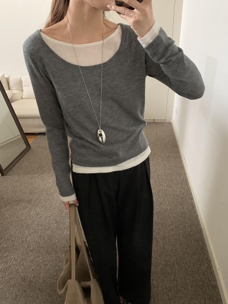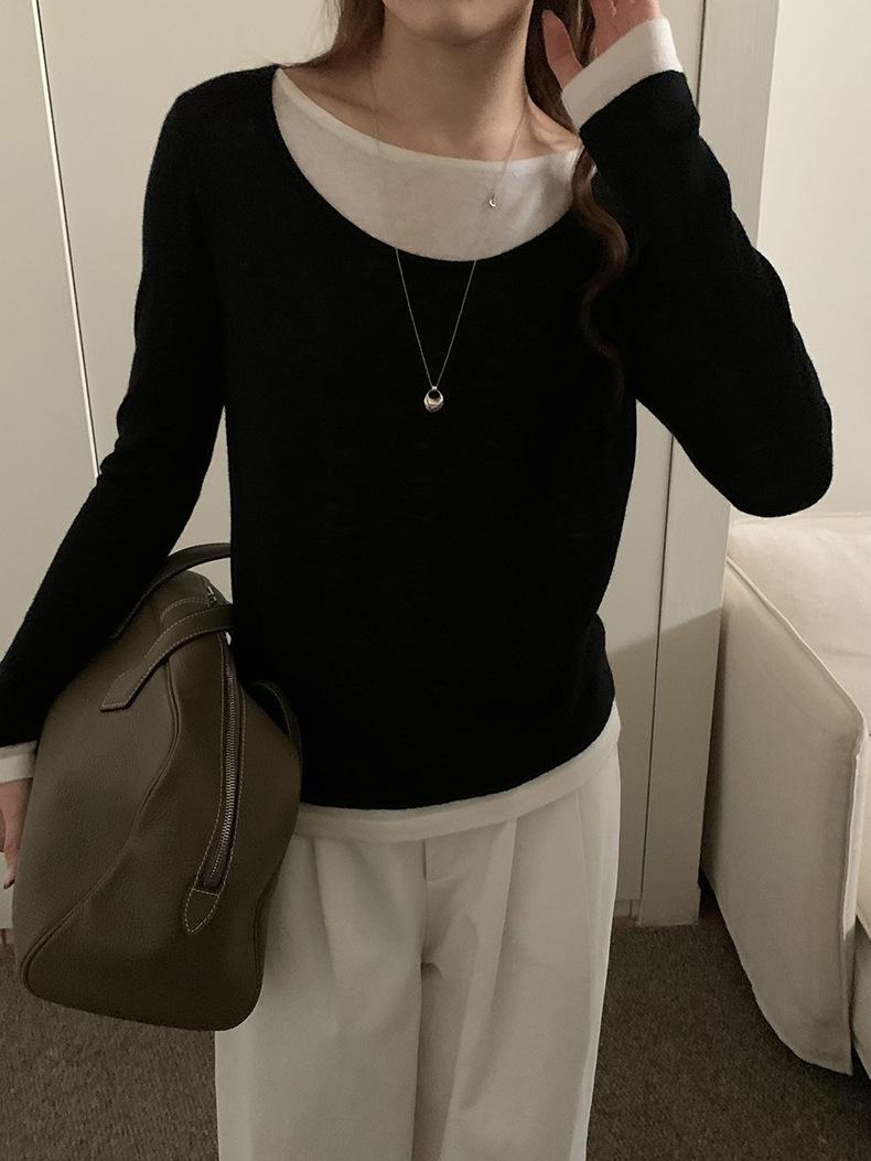 Yuanshi Bluepops 2024 Nuevo Estilo Otoñal Top de Lana Falso de Dos Piezas para Mujer, Suéter Básico de Punto Ajustado A4354