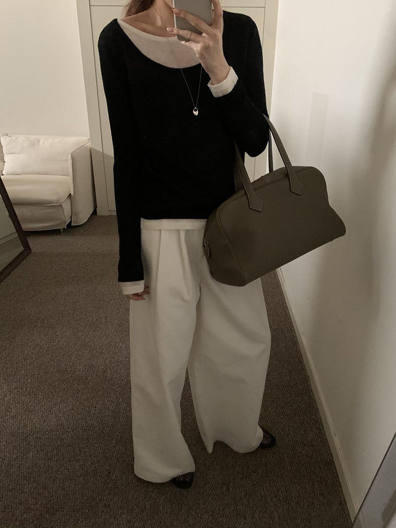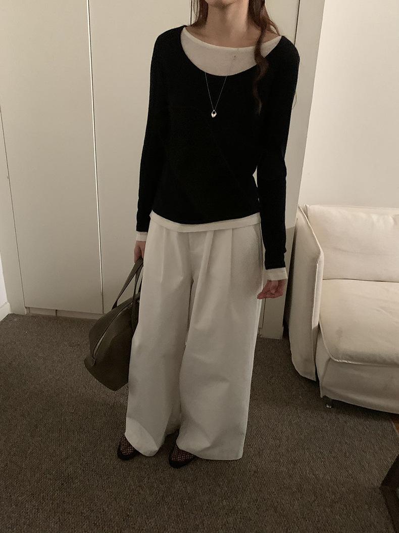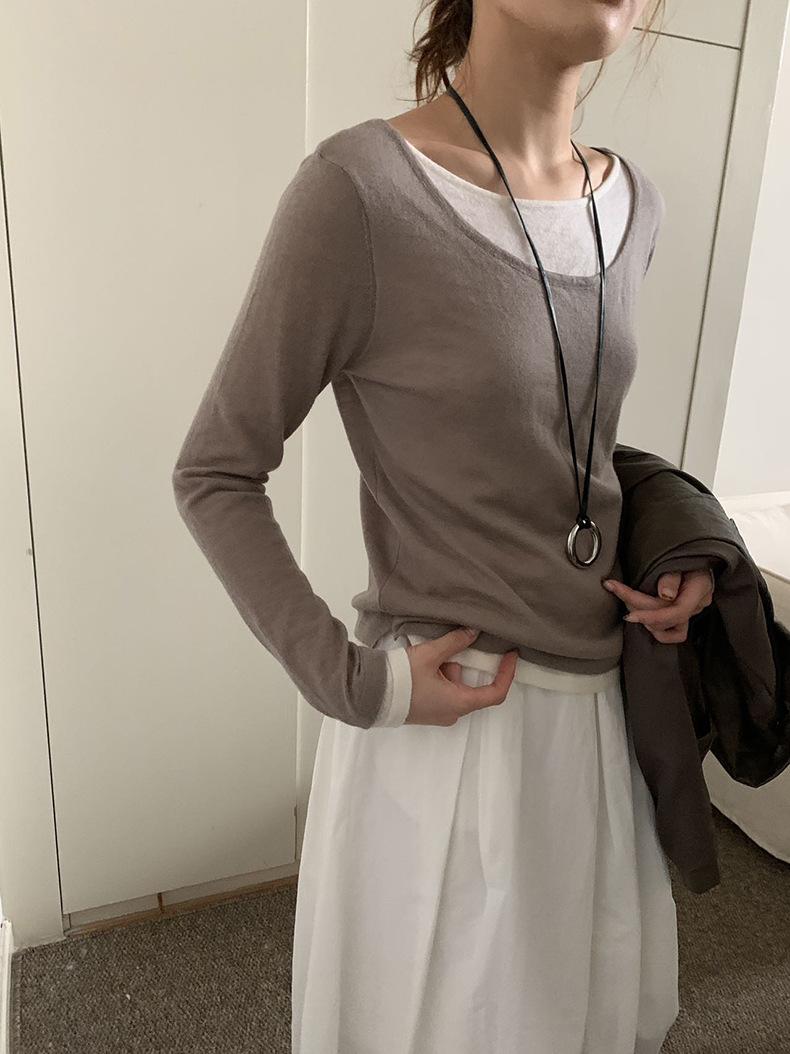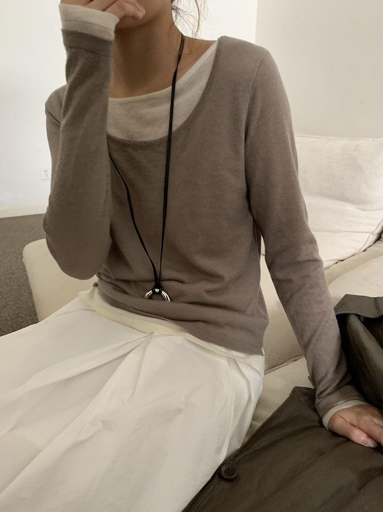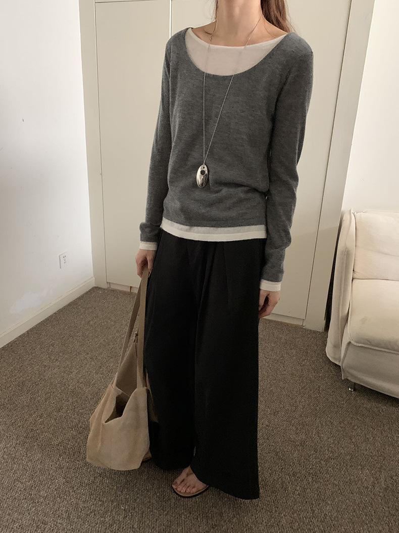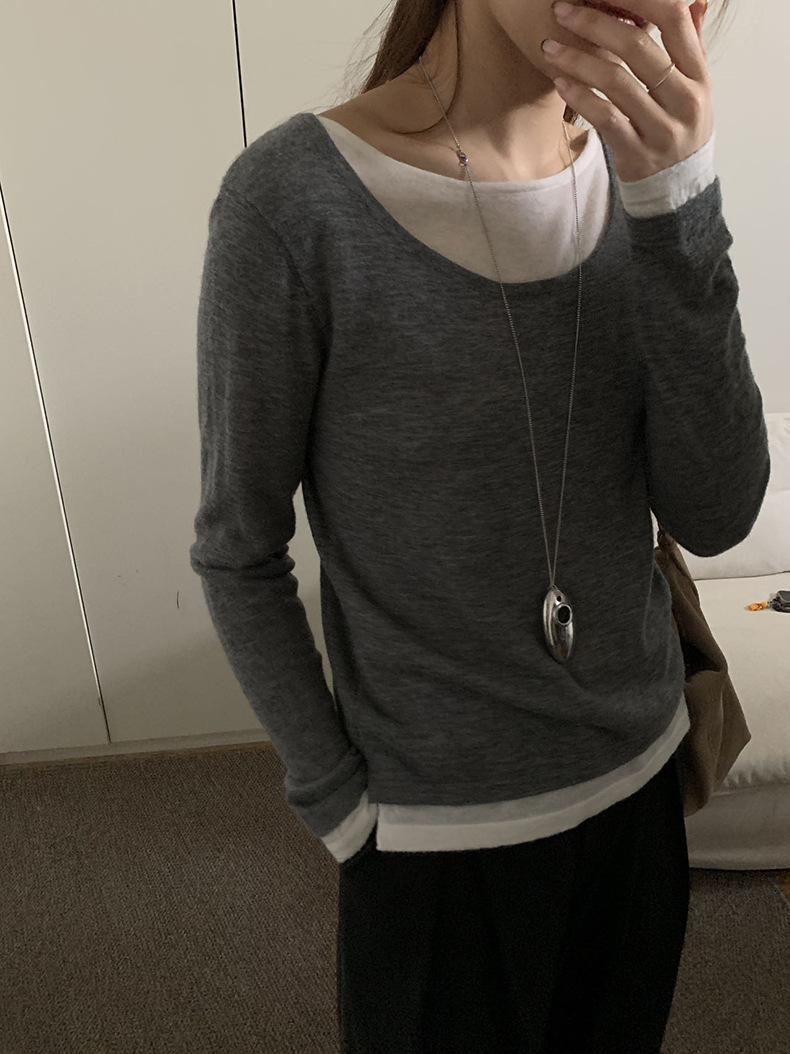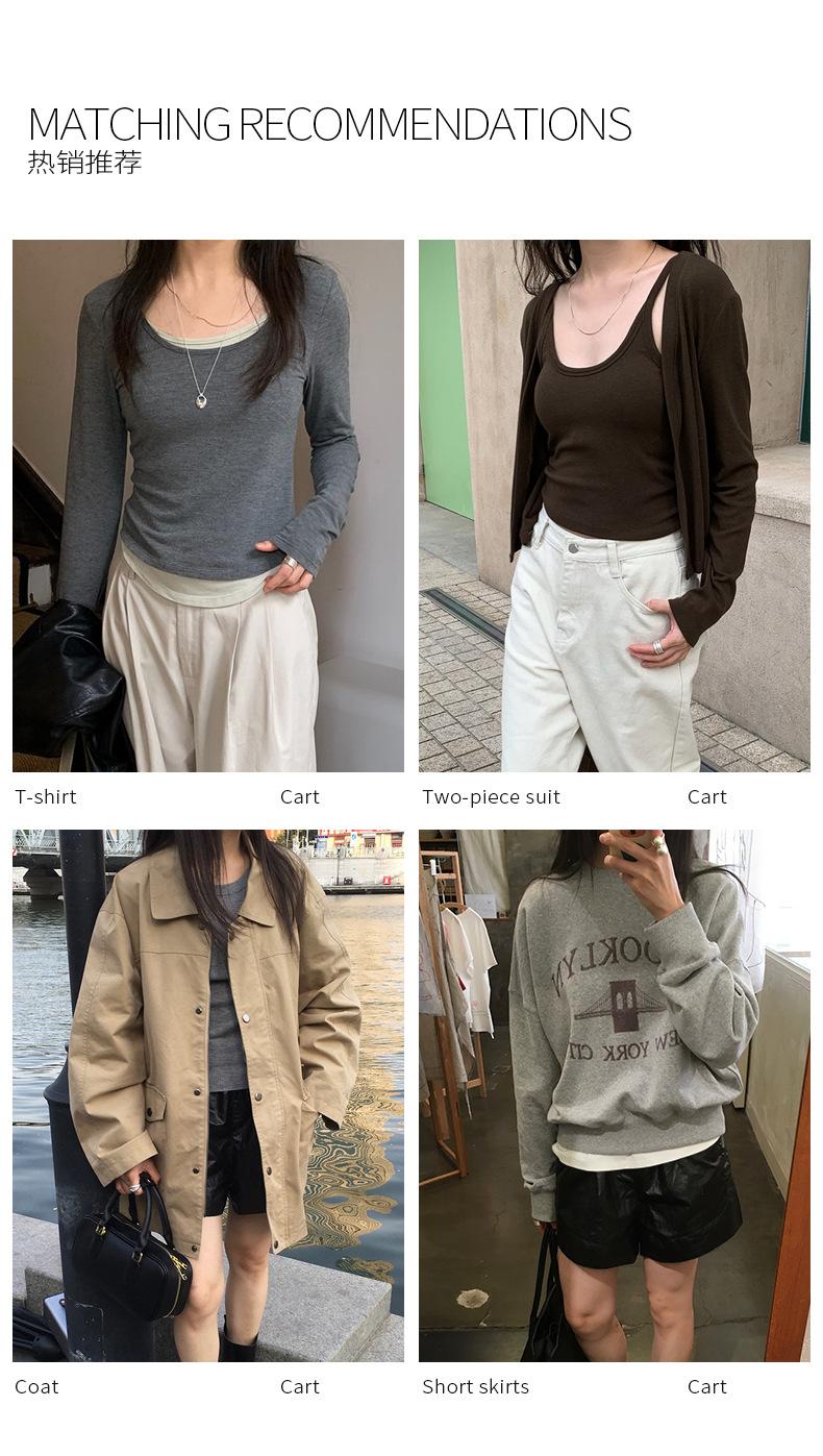 Yuanshi Bluepops 2024 Nuevo Estilo Otoñal Top de Lana Falso de Dos Piezas para Mujer, Suéter Básico de Punto Ajustado A4354