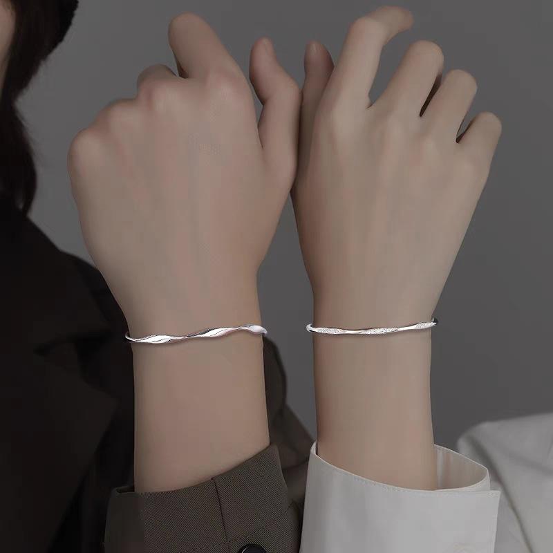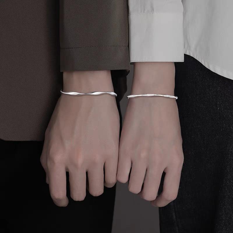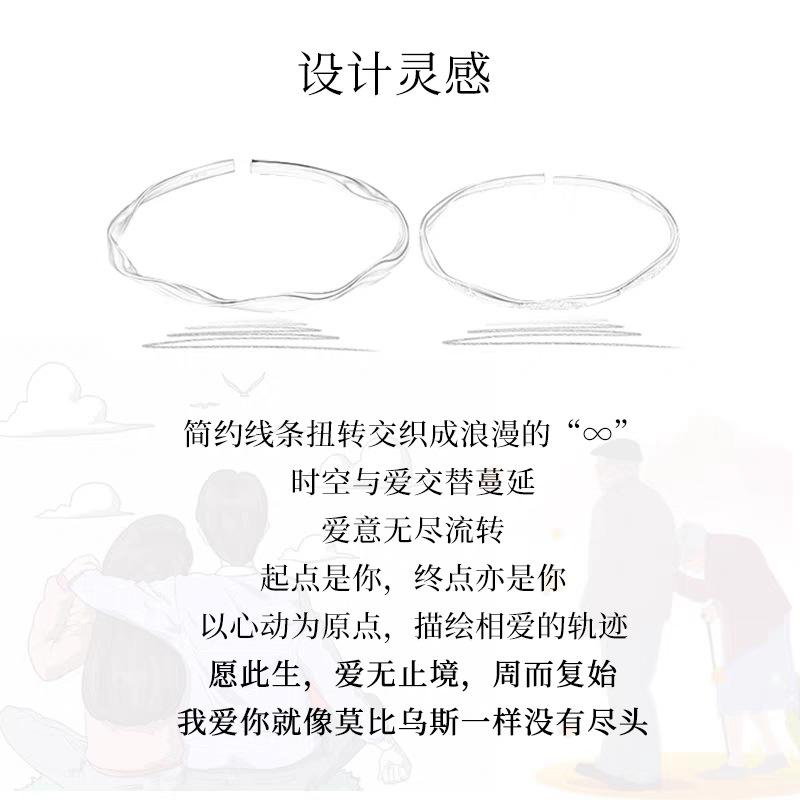 Pulsera para Pareja Mobius de Cobre Blanco Plateado Transmisión en Vivo Douyin Diseño Nicho Versátil Pulsera para Hombres y Mujeres