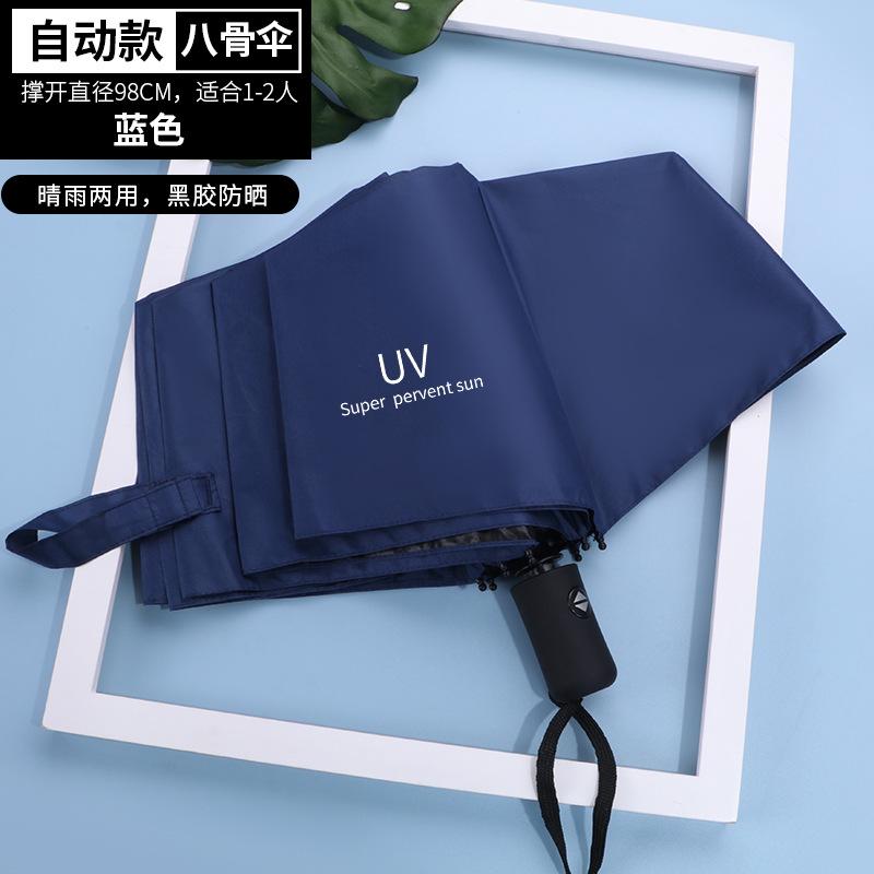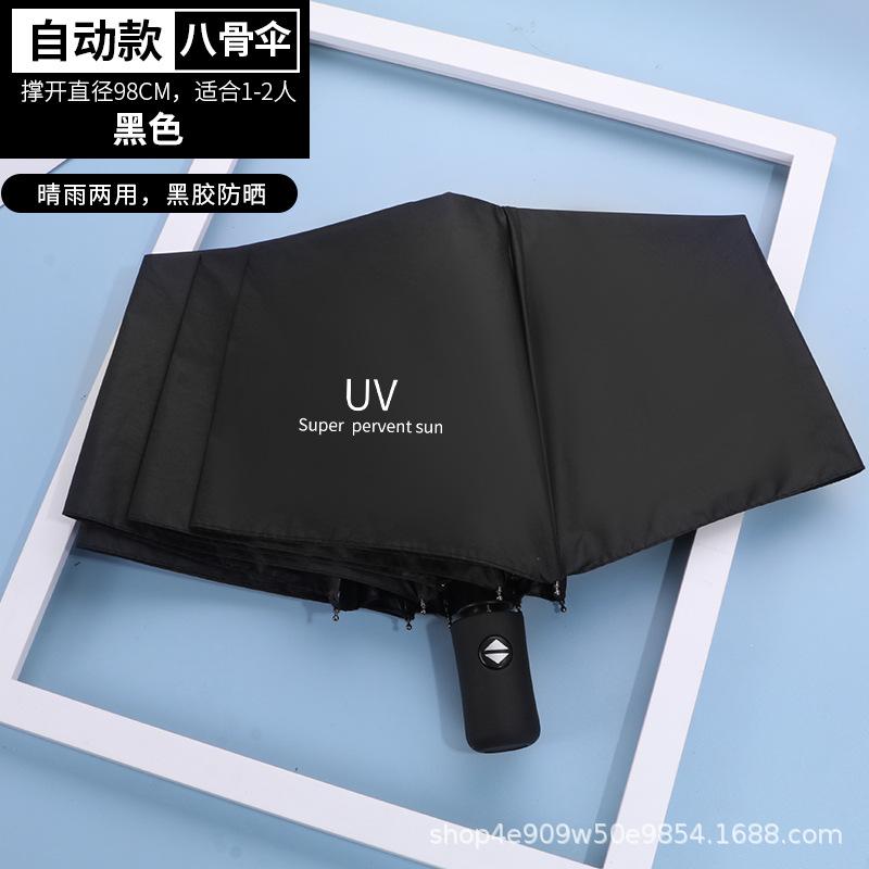 Paraguas automático de tres pliegues, protector solar UV y resistente a la lluvia, paraguas publicitario de doble uso, paraguas de regalo con logotipo personalizado, paraguas de sol al por mayor.