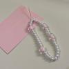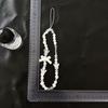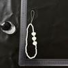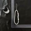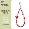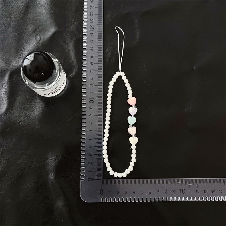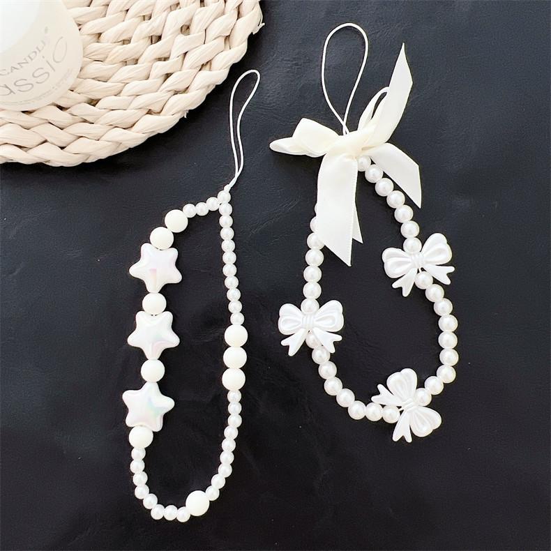 Cadena para teléfono móvil con cuentas de color blanco cremoso, lazo de amor con estrella de cinco puntas, cordón para teléfono móvil, colgante de acrílico para funda de teléfono, venta al por mayor