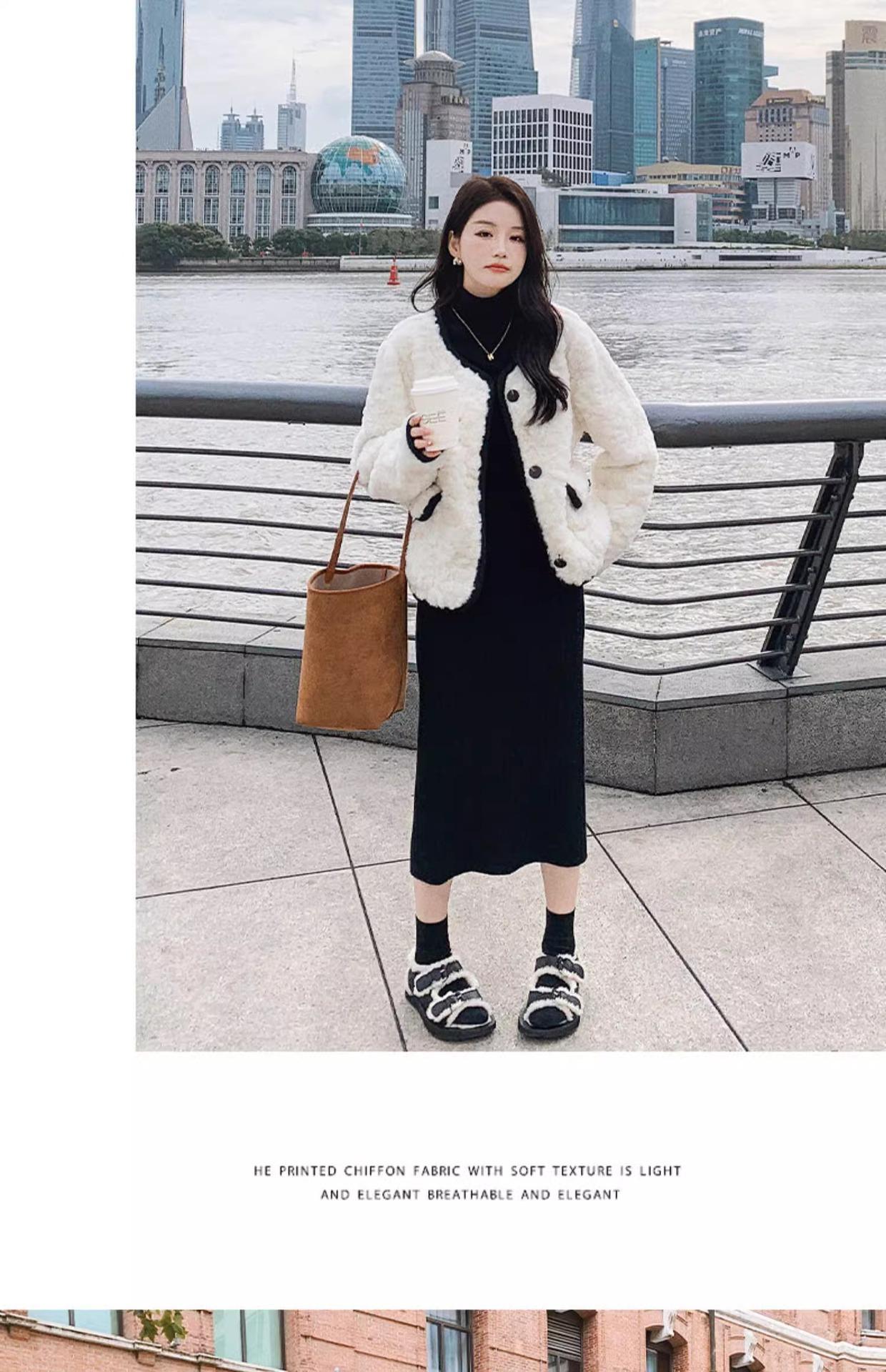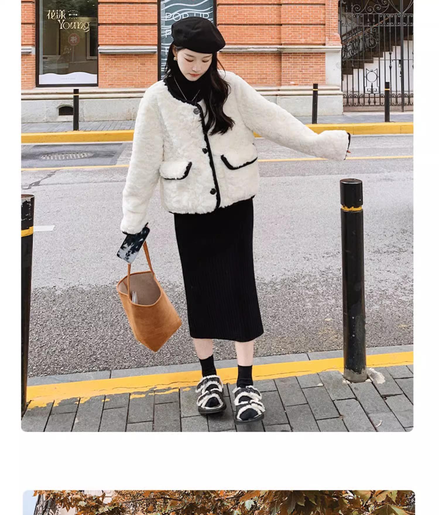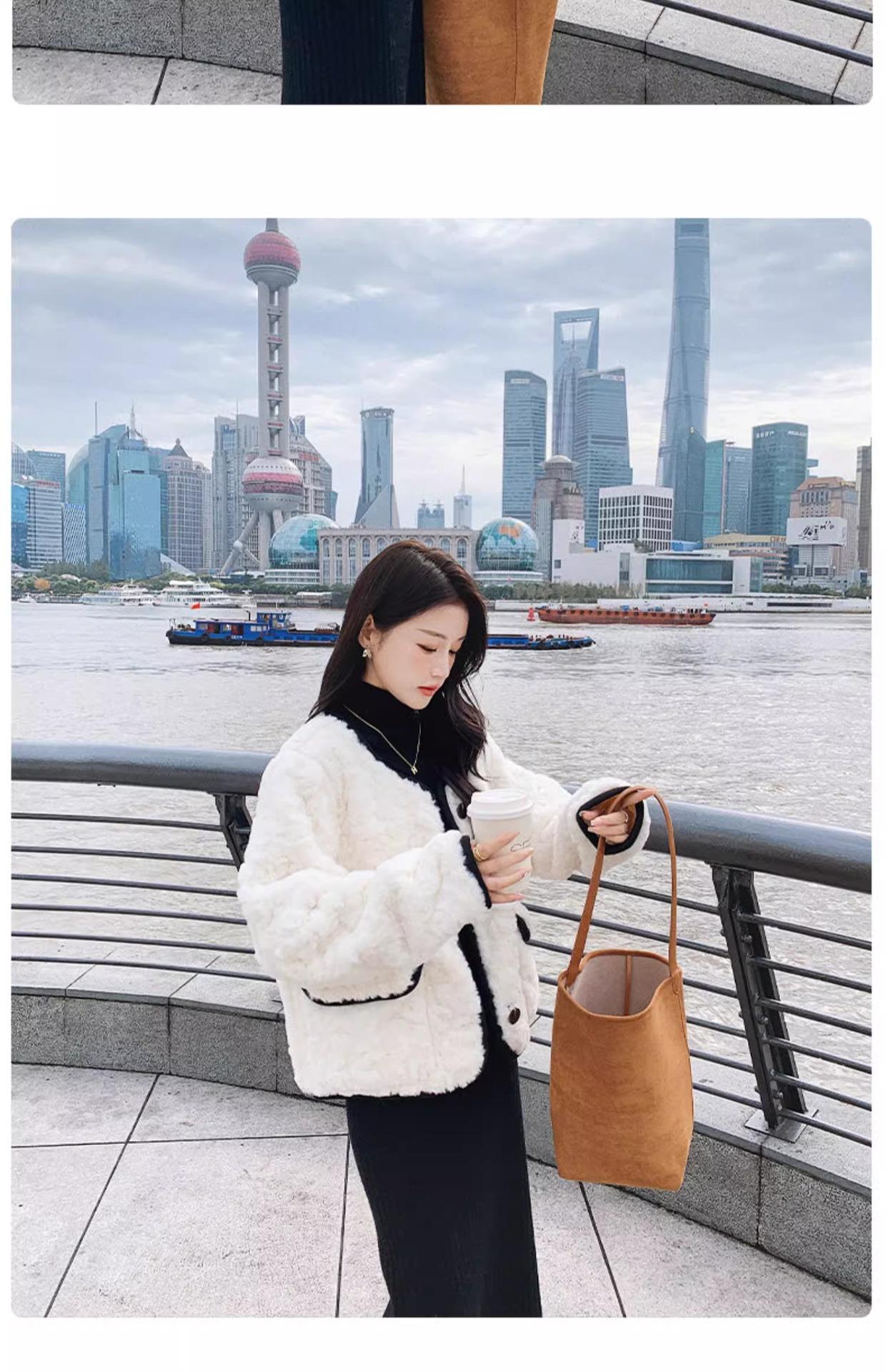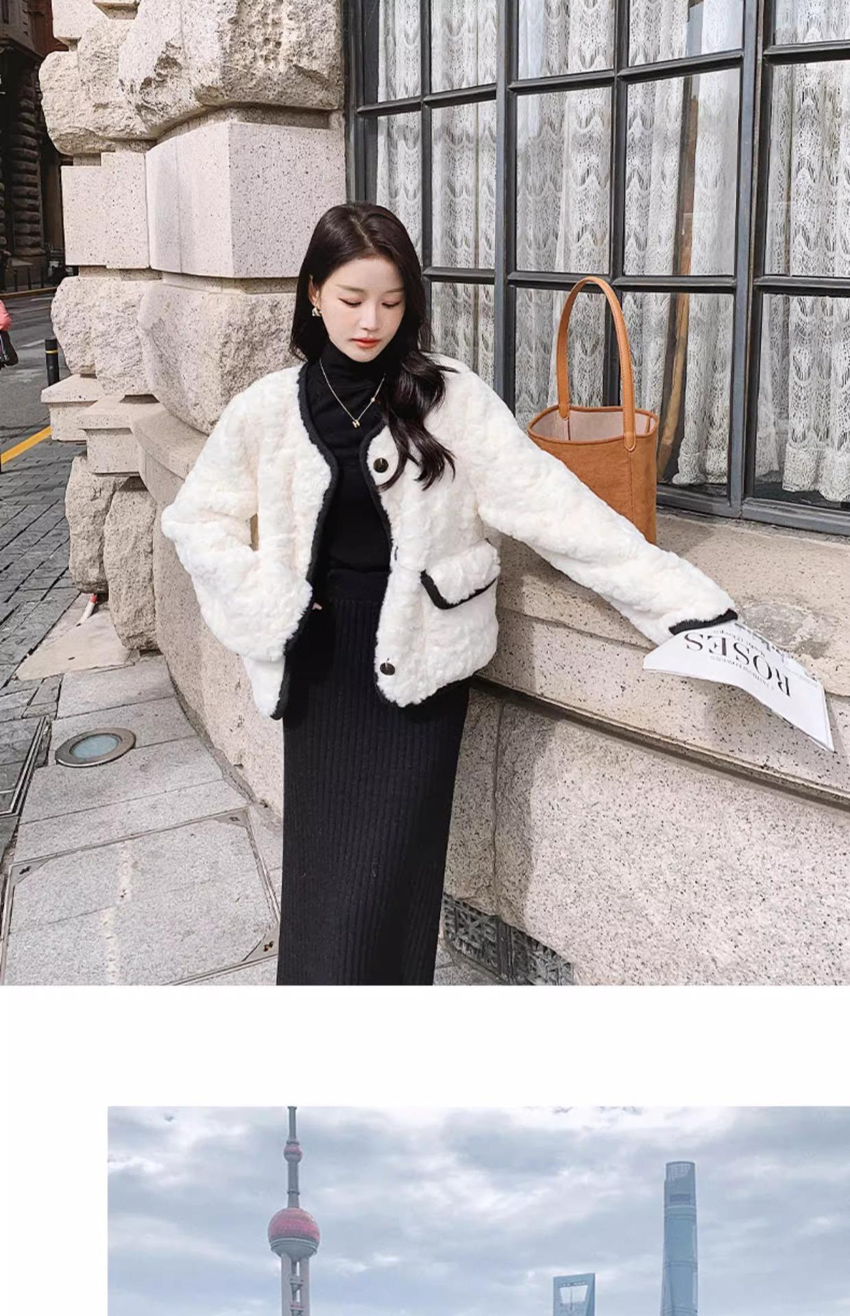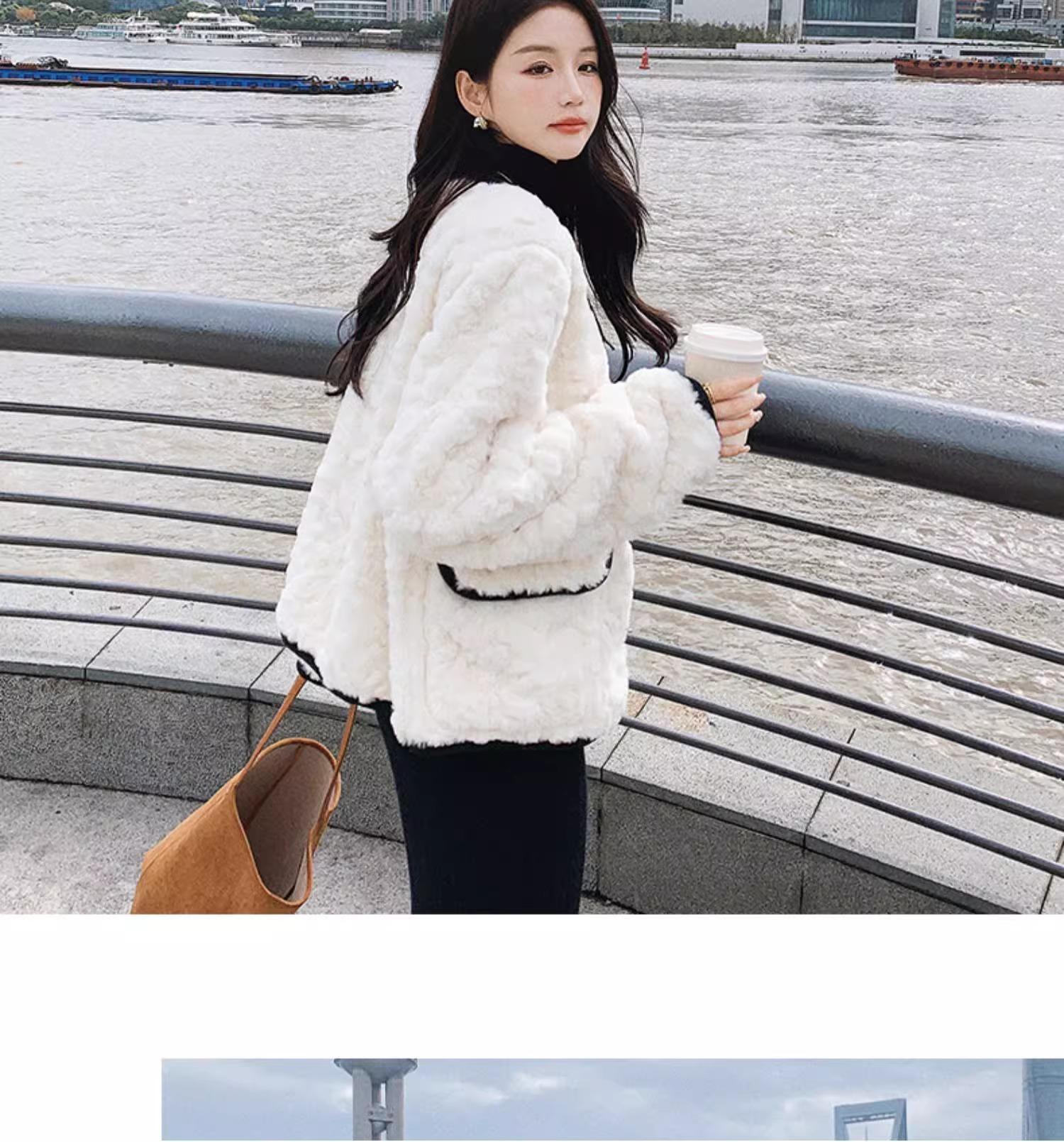 Chaqueta de Cachemira Estilo Tweed para Mujer Otoño e Invierno 2025 Nuevo Estilo de Alta Gama Felpa Gruesa Chaqueta Corta