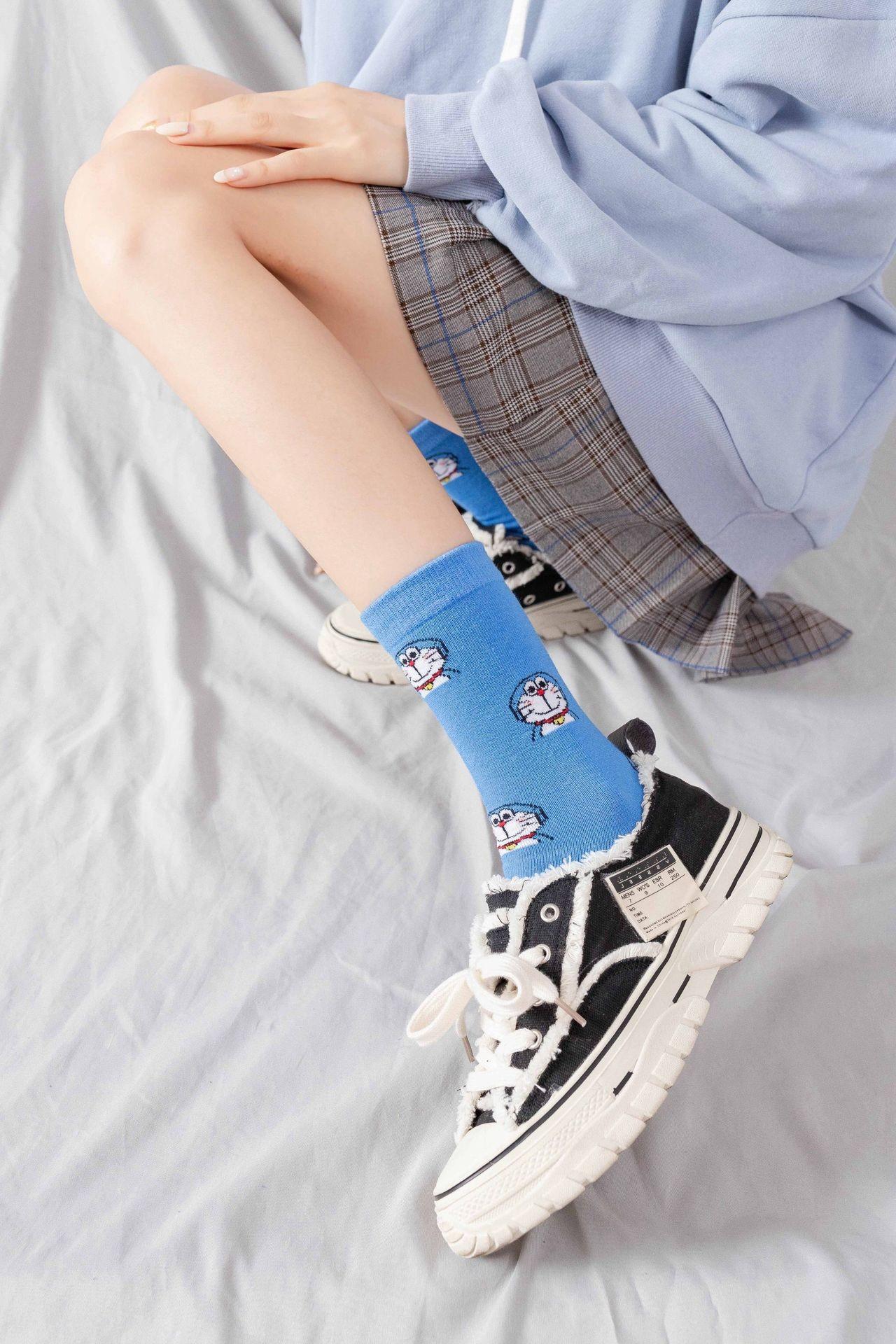 Calcetines de otoño e invierno para niños, estilo japonés, lindos calcetines de algodón de gatito, calcetines de tubo medio para mujer, calcetines de moda de jacquard de dibujos animados, calcetines de moda para estudiantes.