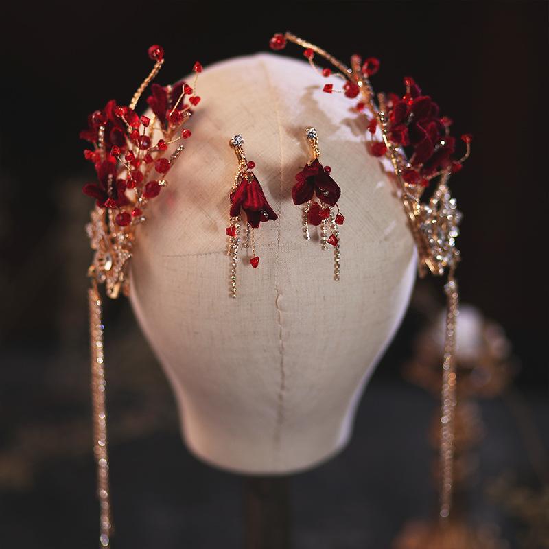 Compra Nueva prenda nupcial romántica de estilo coreano para brindis, carillón de viento de terciopelo, flor, borla de cristal, horquilla con forma de clip lateral, accesorios para la cabeza al por mayor en Joom.pro