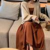 Otoño e Invierno 2025 Nuevo Vestidito Chic con un Temperamento Femenino, Vestido de Tirantes Espagueti, Conjunto de Dos Piezas de Cárdigan Holgado de Punto