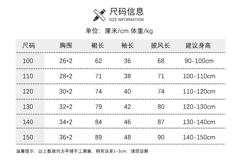 100cm, 110cm, 120cm, 130cm, 140cm, 150cm
