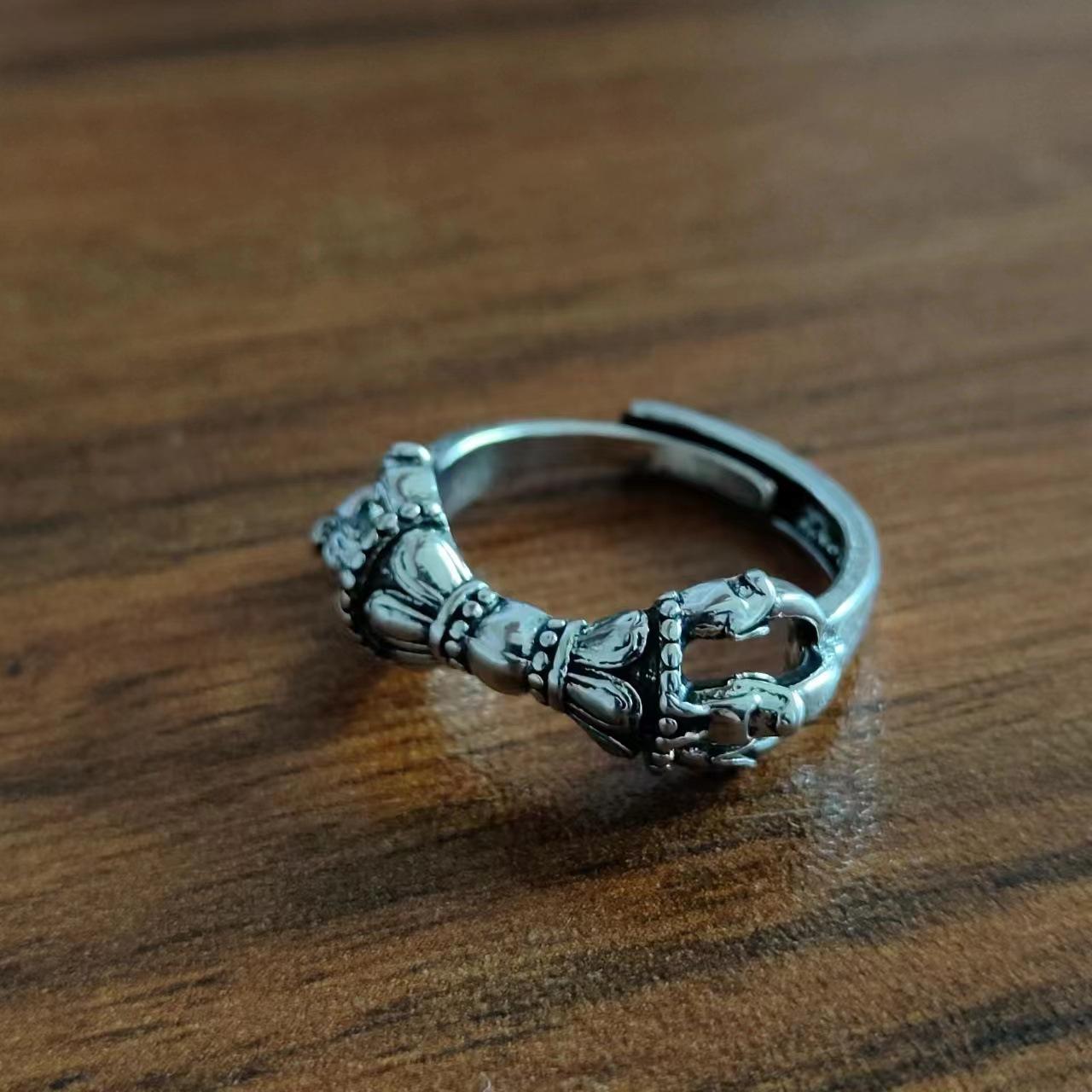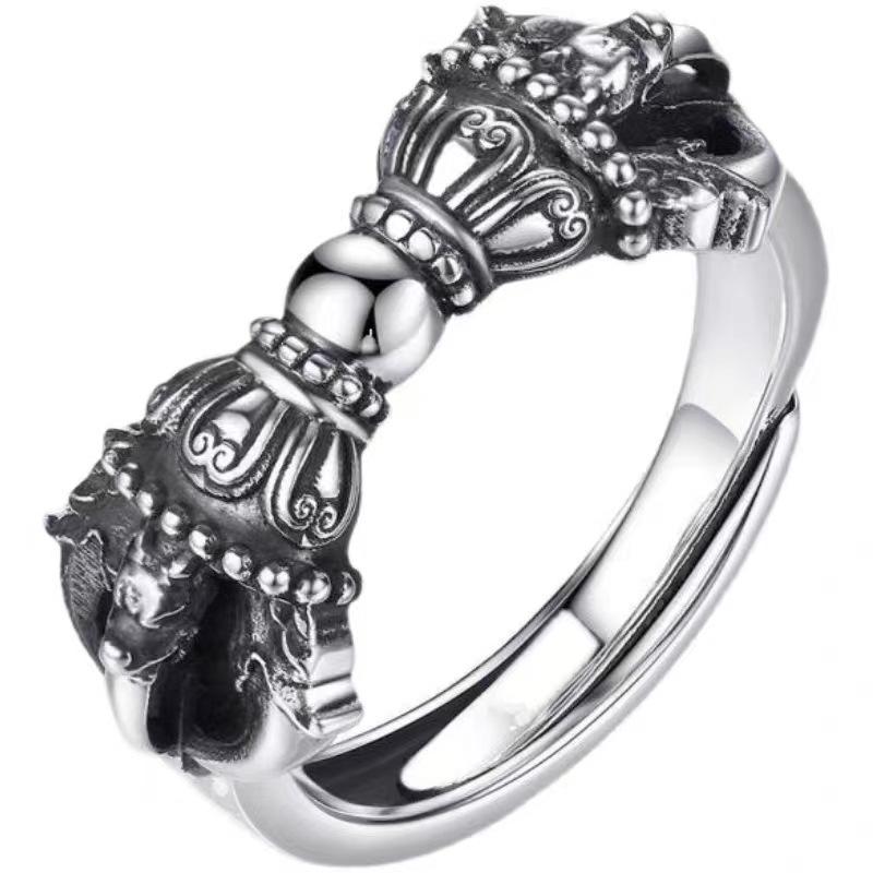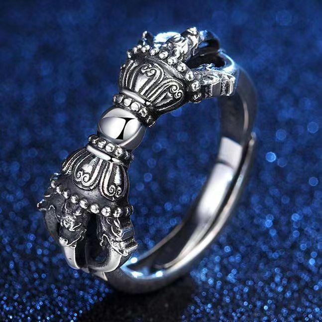 Anillo de plata tailandesa con mortero de diamante retro estilo chino para hombre y mujer, diseño de nicho, estilo étnico, anillo de aleación para pareja Xizang