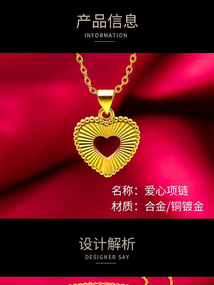 Anillo de oro vietnamita con forma de flor de amor para mujer, collar hueco con forma de corazón, joyería transfronteriza para mujer, venta al por mayor