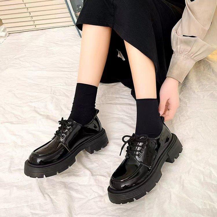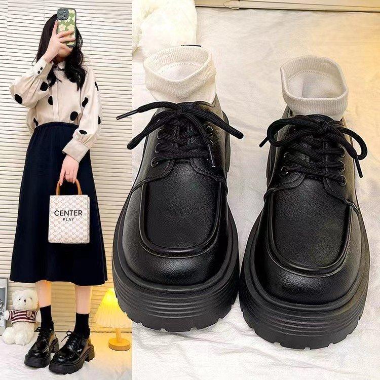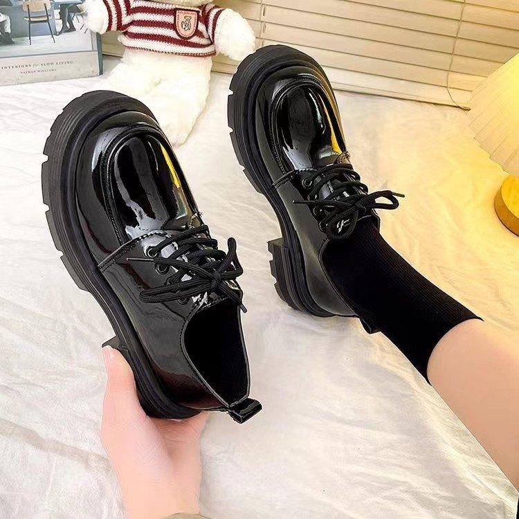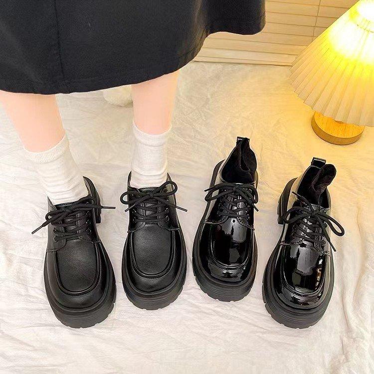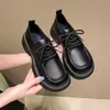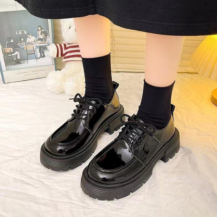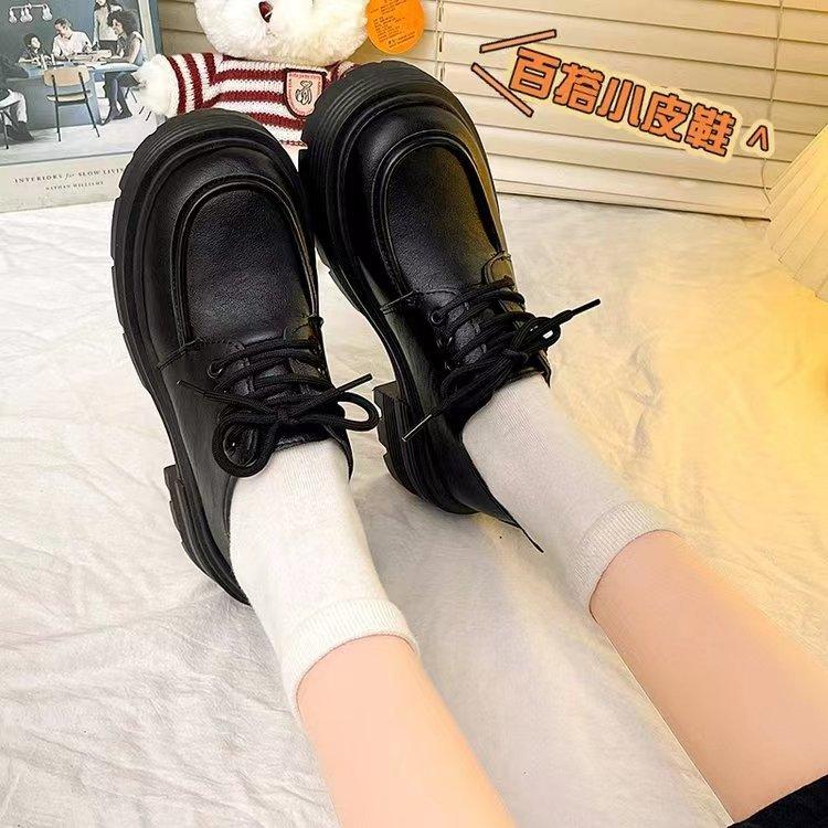 Zapatos de Cuero Pequeños de Tacón Grueso Franceses para Mujer 2024 Otoño Nuevo Retro Estilo Británico Suela Gruesa Versátiles Mocasines con Cordones Venta al por Mayor