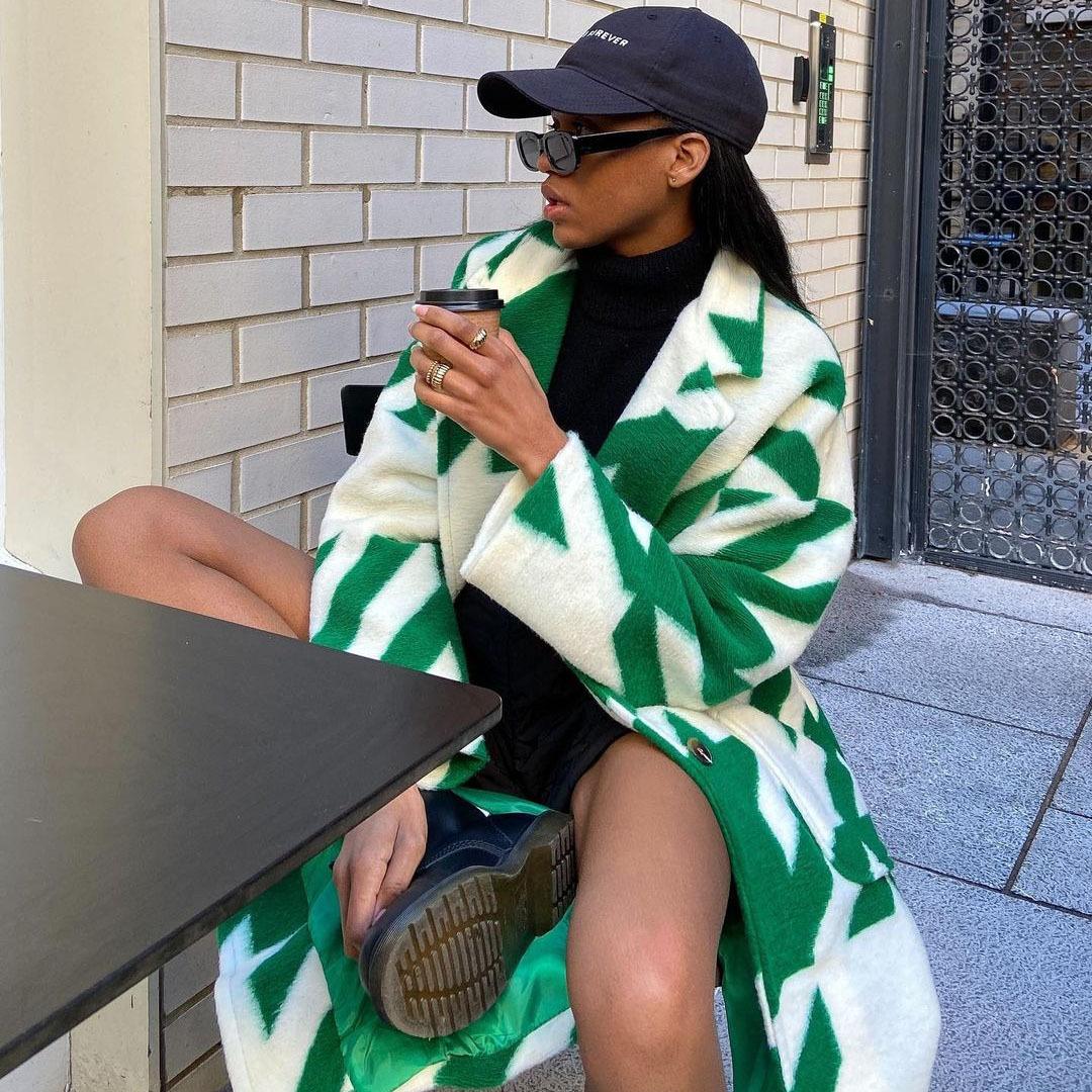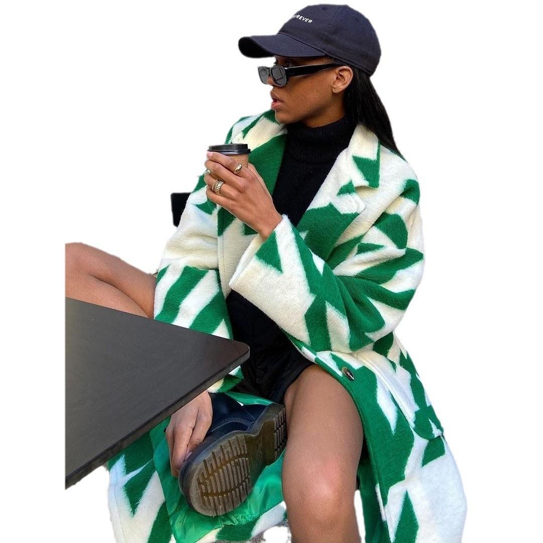 2025 Nueva Ropa de Otoño Europea y Americana para Mujer, Chaquetas de Solapa de Manga Larga Modernas con Varias Combinaciones de Color, Abrigos de Lana Estampados
