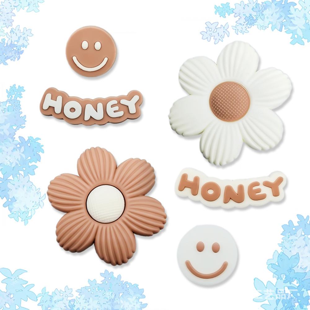 Hebilla para zapatos con agujeros y flores, diseño de cara sonriente de dos colores, con flores grandes, decorativa de PVC y plástico suave para jardín, accesorios para bolsas con agujeros.