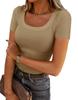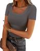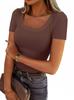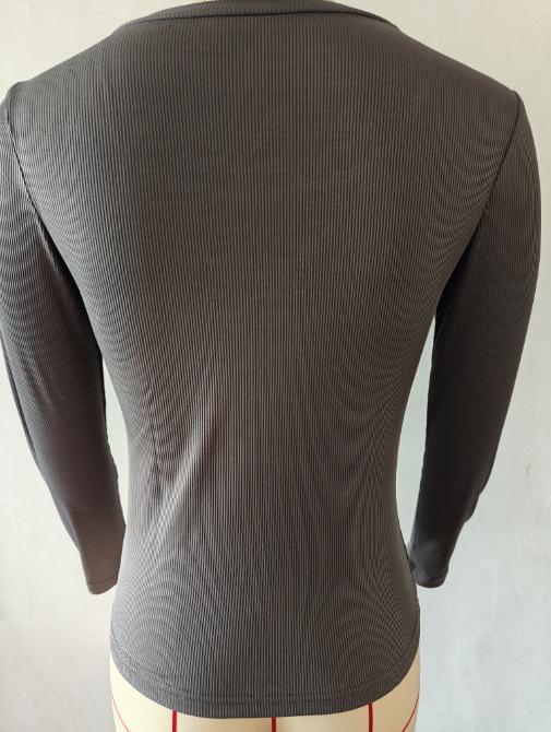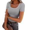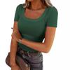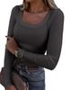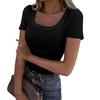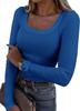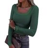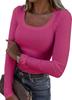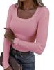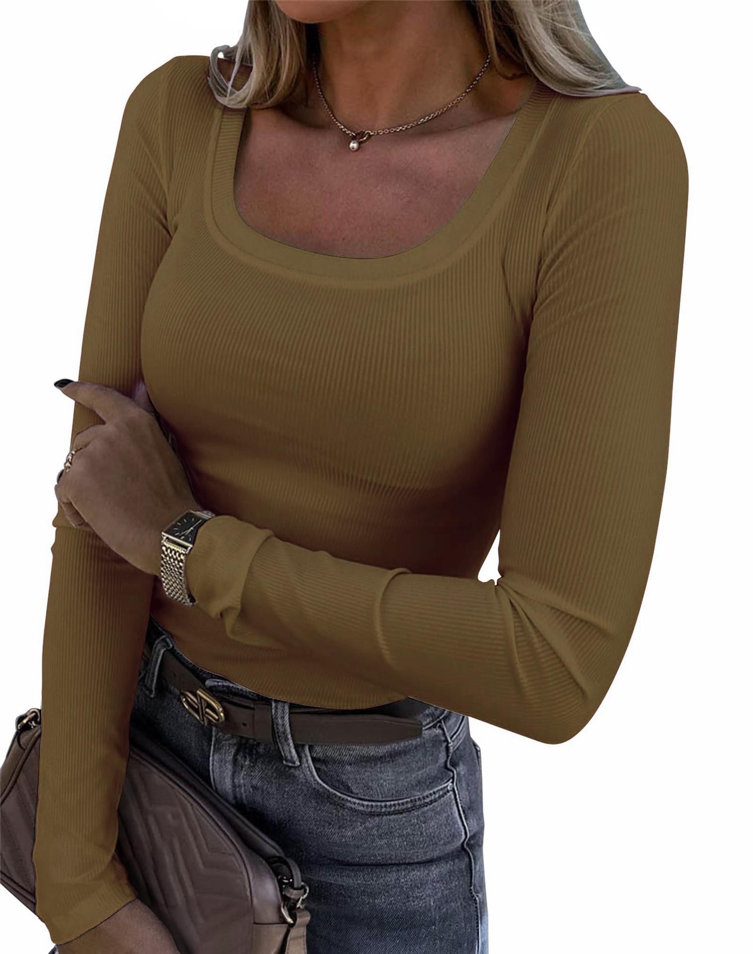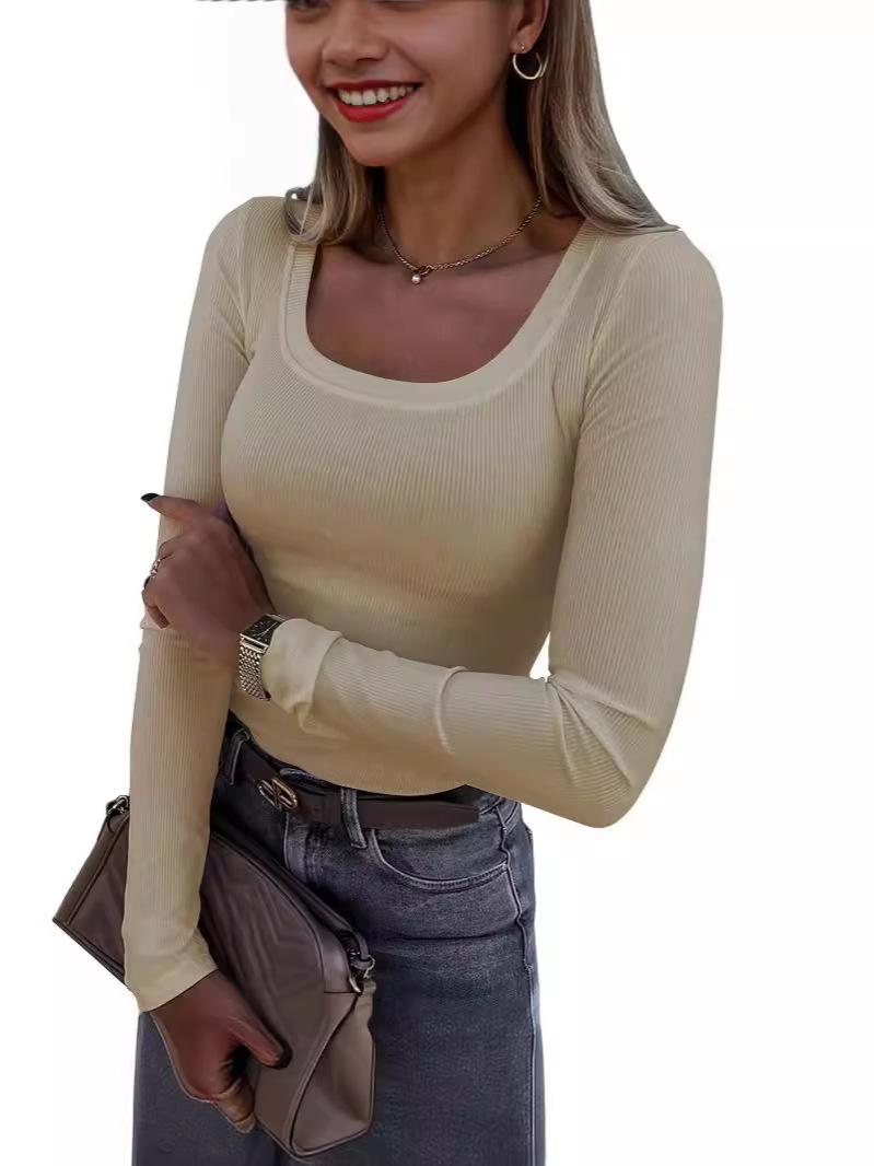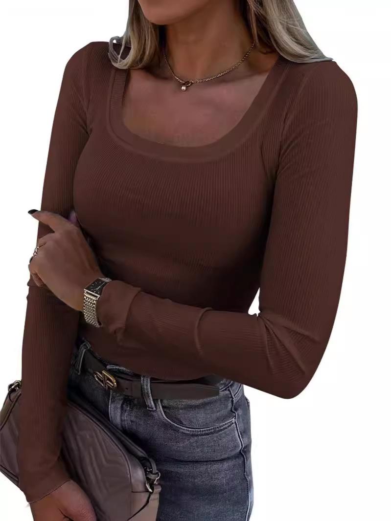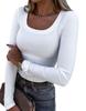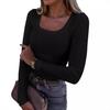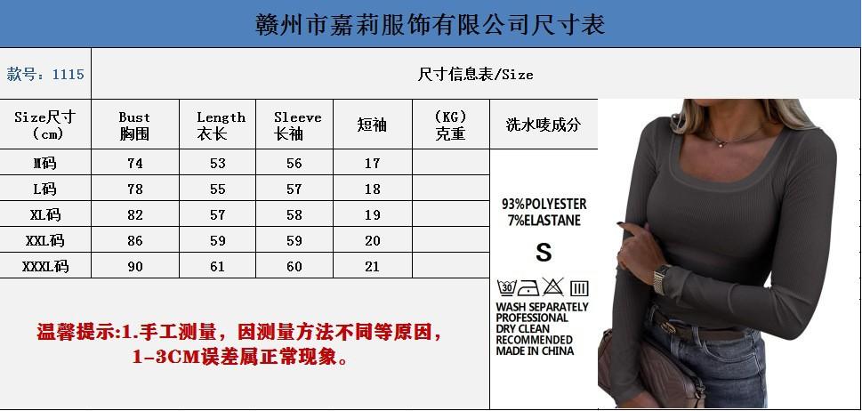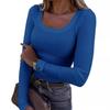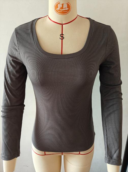 Amazon AliExpress Nuevo Europeo y Americano Explosiones Hilo Hoyo Ajustado Manga Larga Sexy Cuello U Casual Camiseta de Mujer