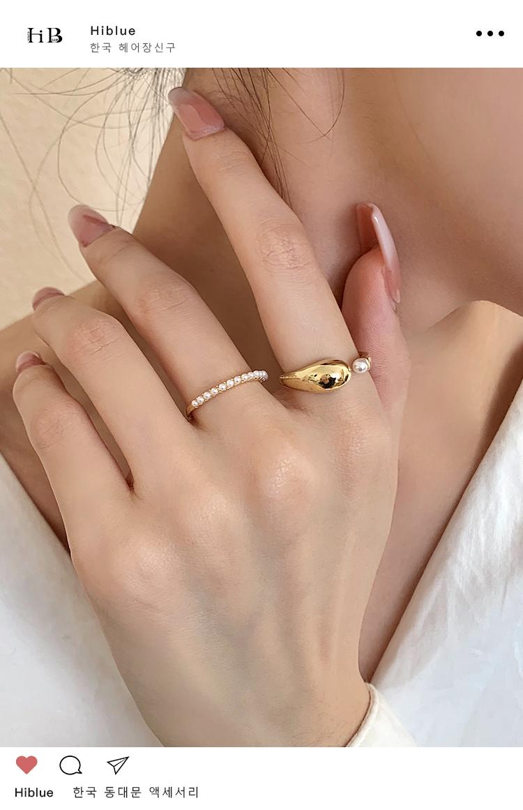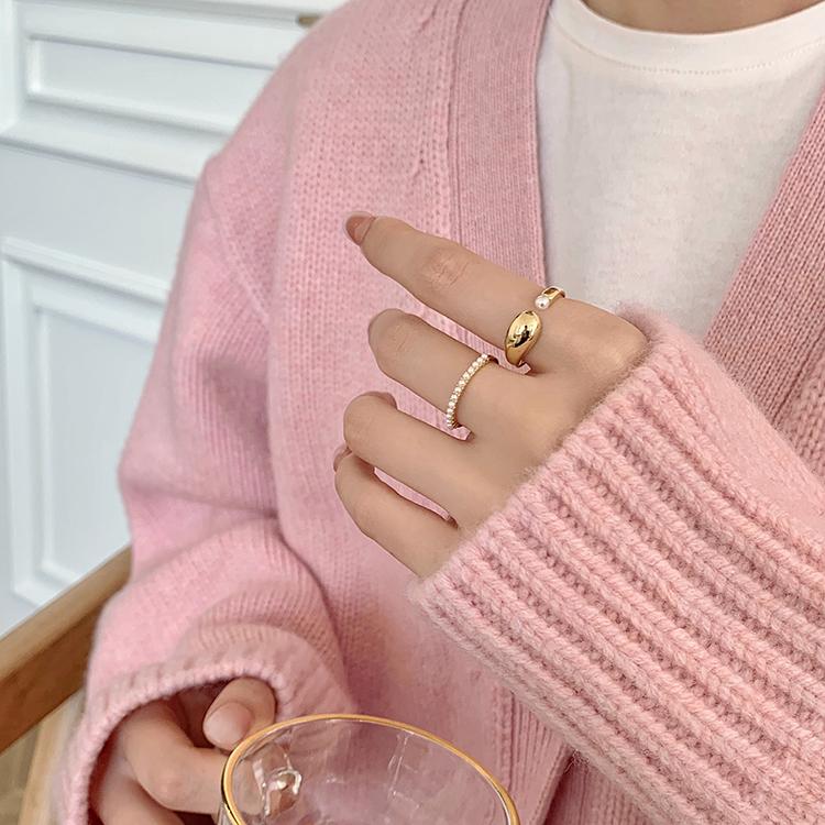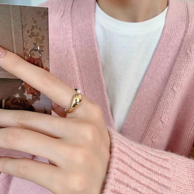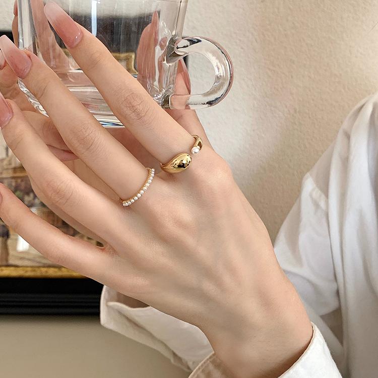 Anillo de Dos Piezas de Perla con Sentido de Diseño Simple, Sentido de Diseño Nicho, Moda Avanzada, Anillo Abierto Ajustable para el Dedo Índice