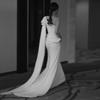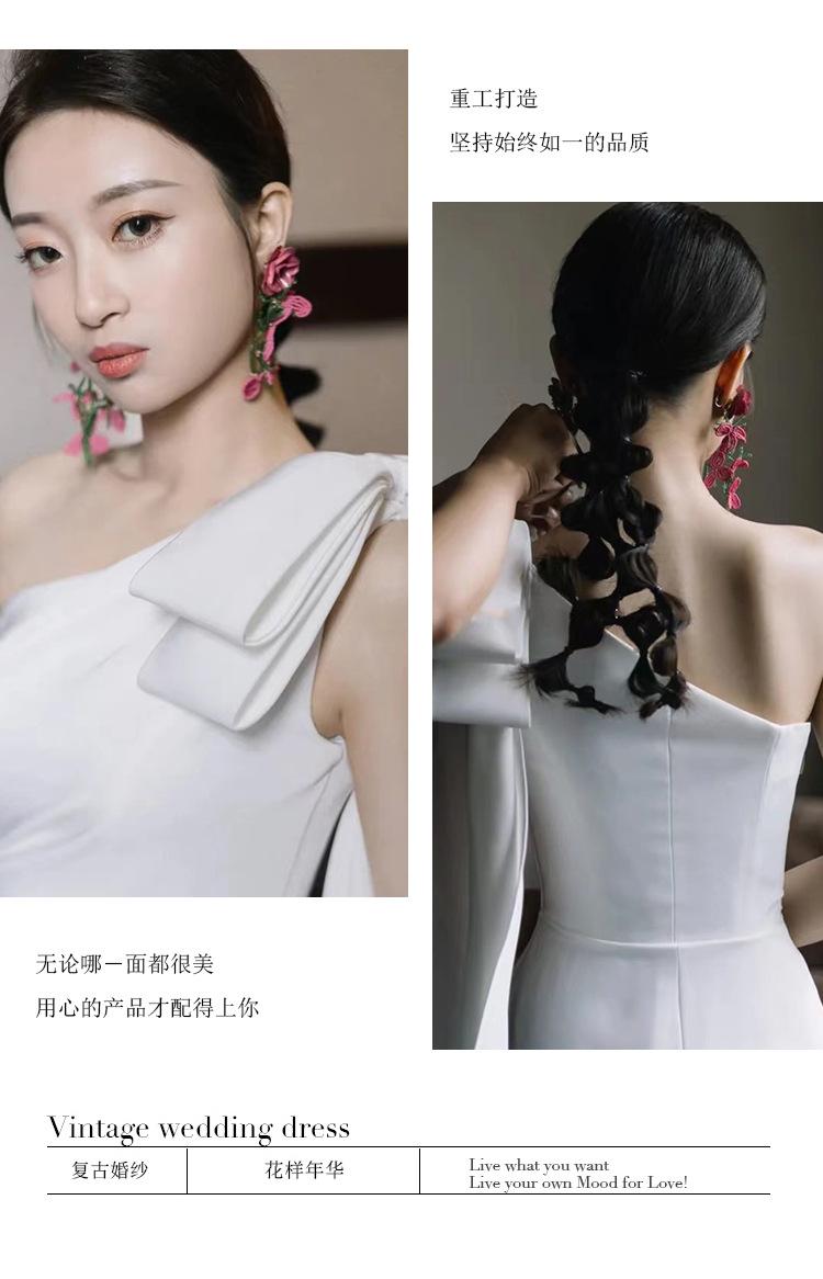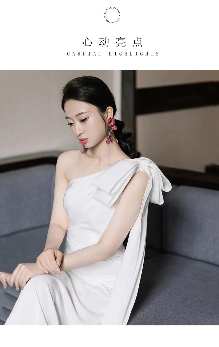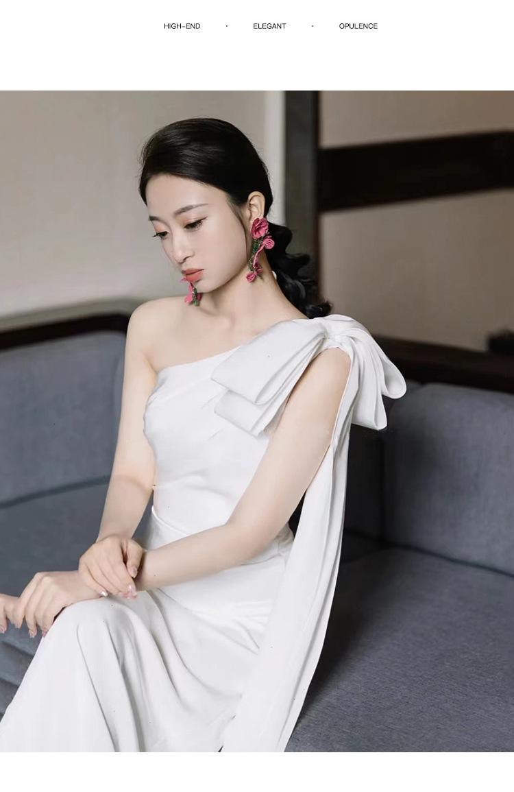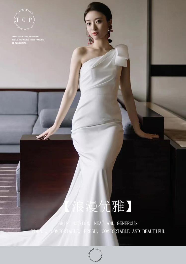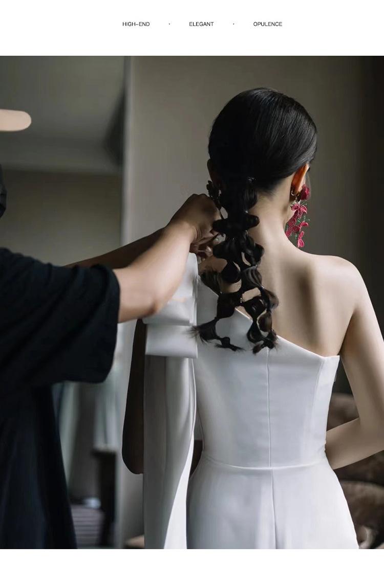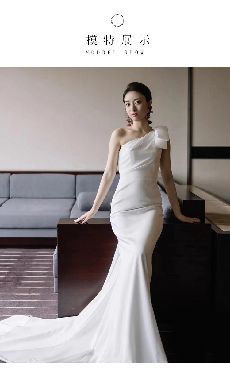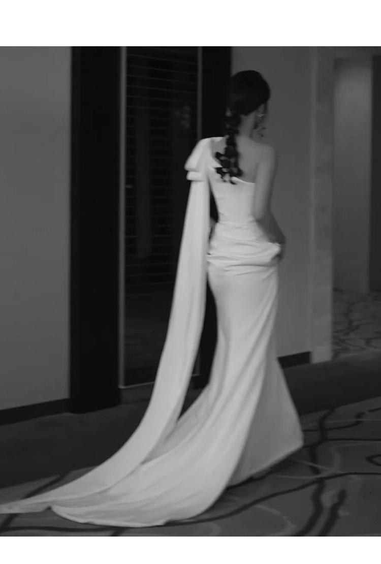 Vestido de Novia Ligero de Satén Francés 2025 Nueva Novia Sencillo Elegante Cola de Pez Salida Velo Cola Pequeña Vestido de Bienvenida Falda