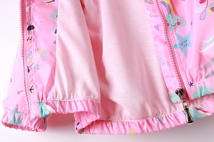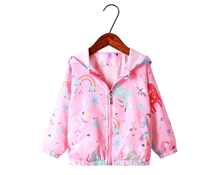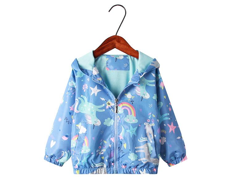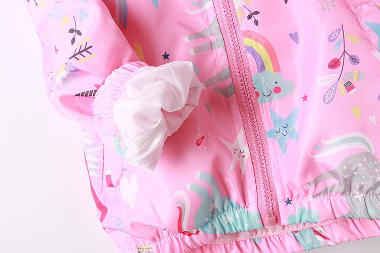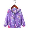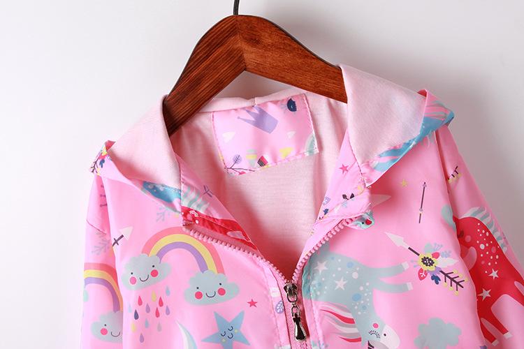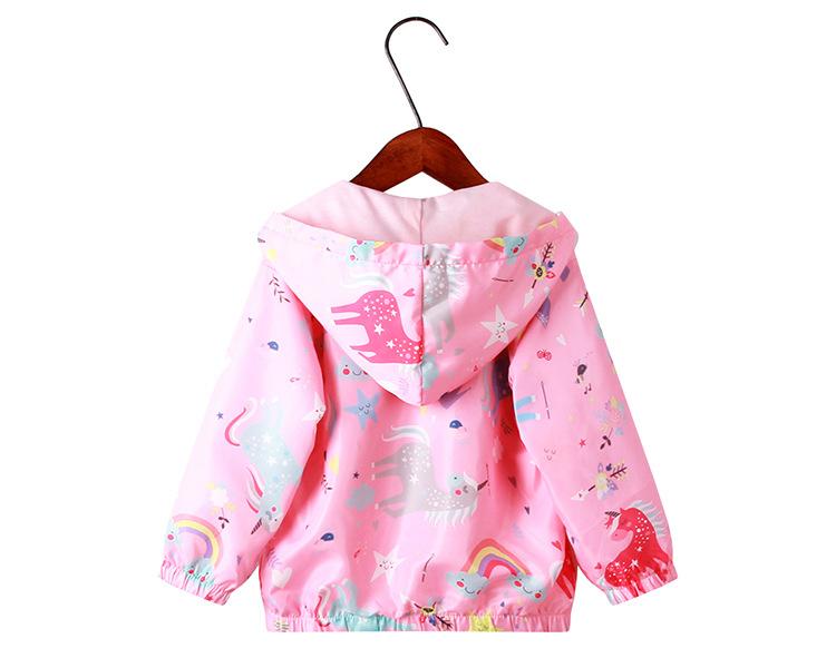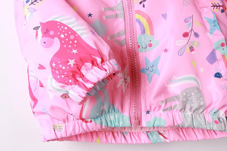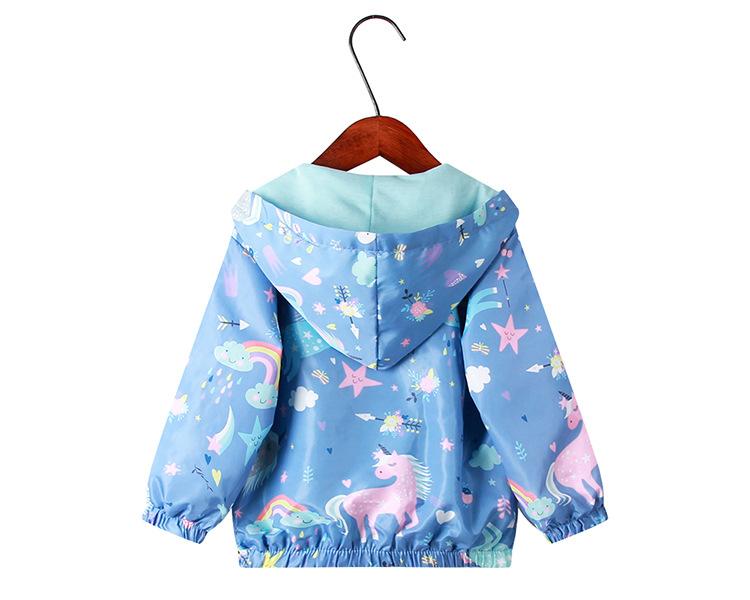 Abrigo de otoño para niña, estilo coreano, con estampado completo de unicornio de dibujos animados y capucha